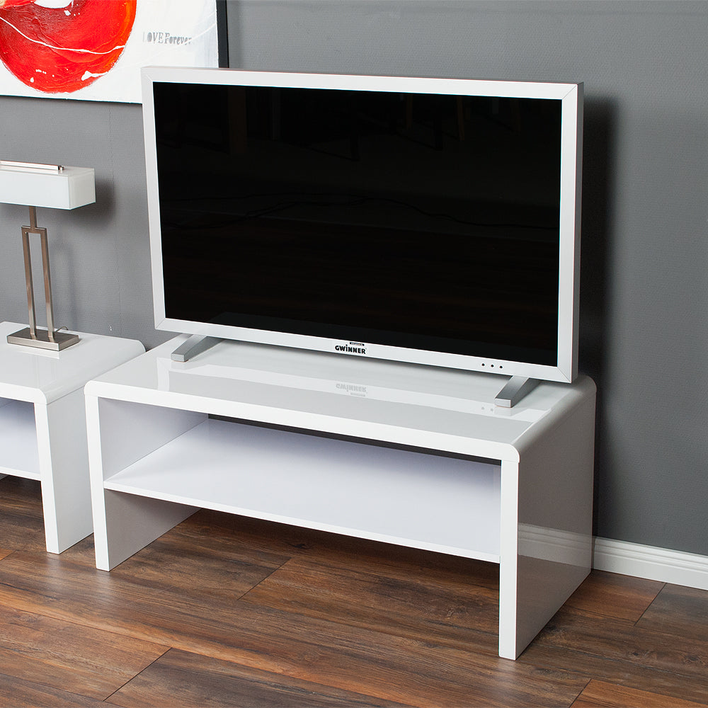 Couchtisch / TV Board CHARLIE mit Ablage Hochglanz Weiß