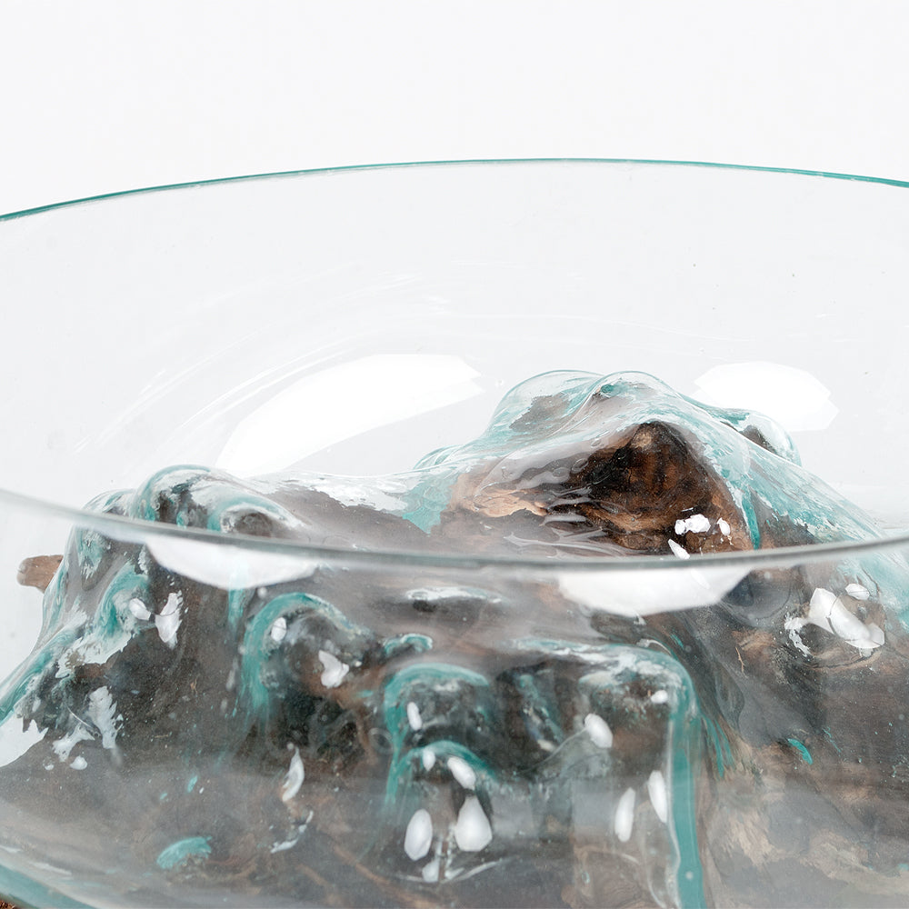 Deko-Glas DROP-8 ca. D35cm Teak Natural Handarbeit Schale