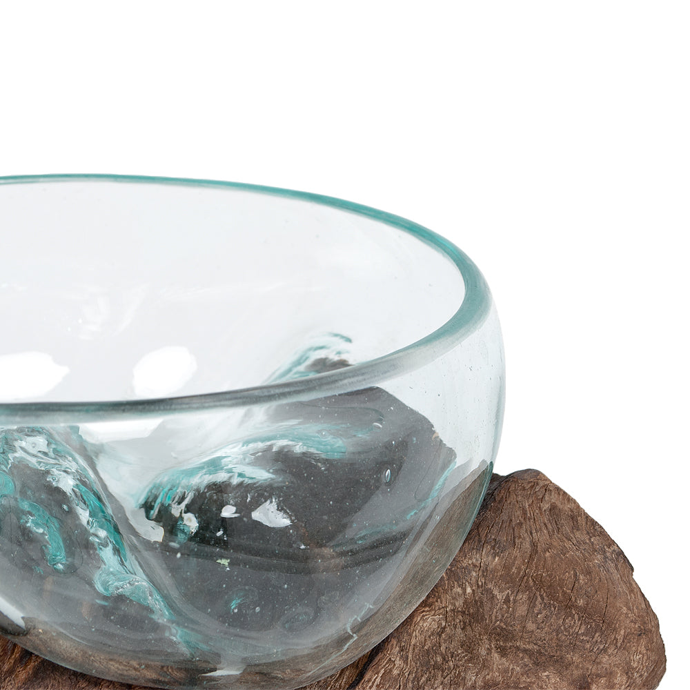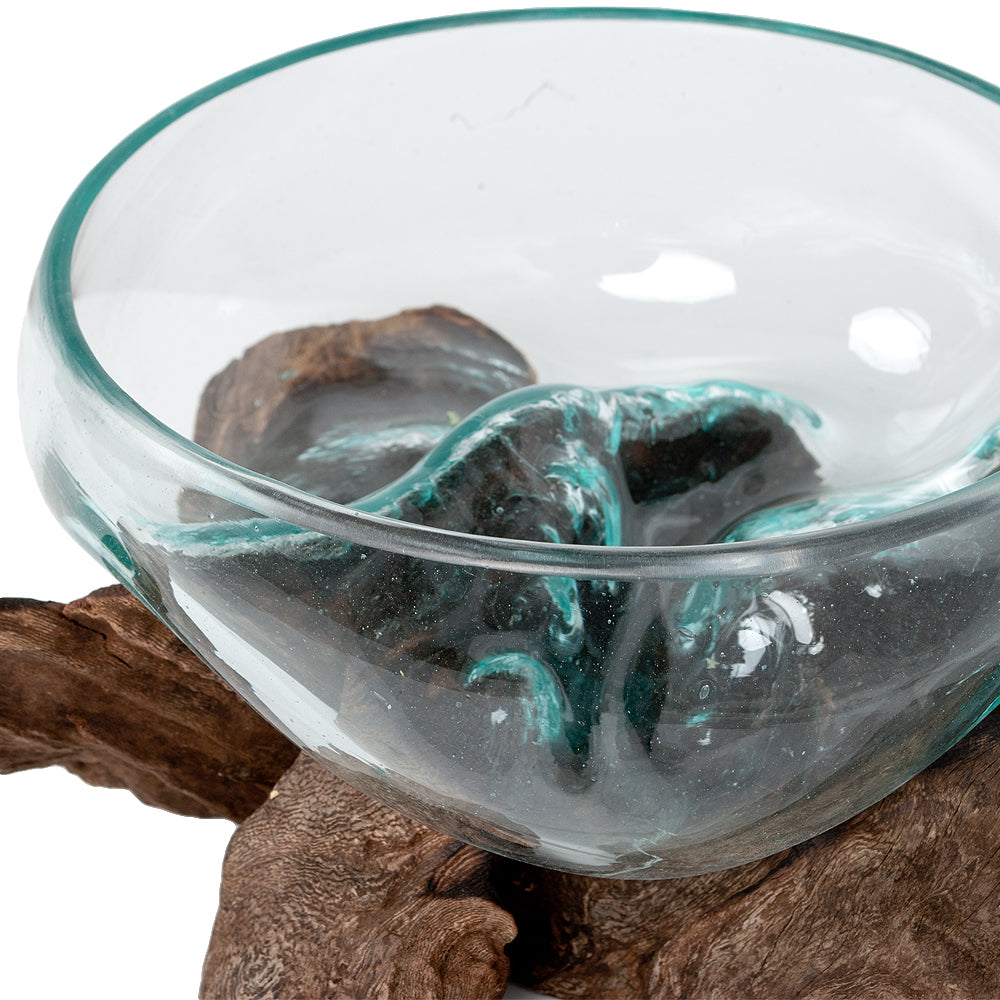 Deko-Glas Unikat DROP-7 Teak Vase Schale Handarbeit