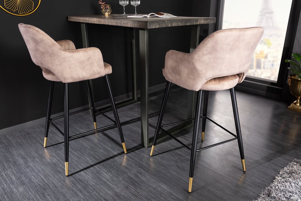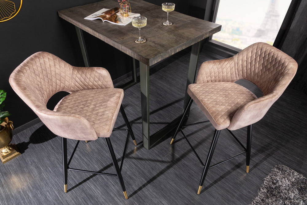 Design Barhocker FRANCE greige Ziersteppung Armlehnen