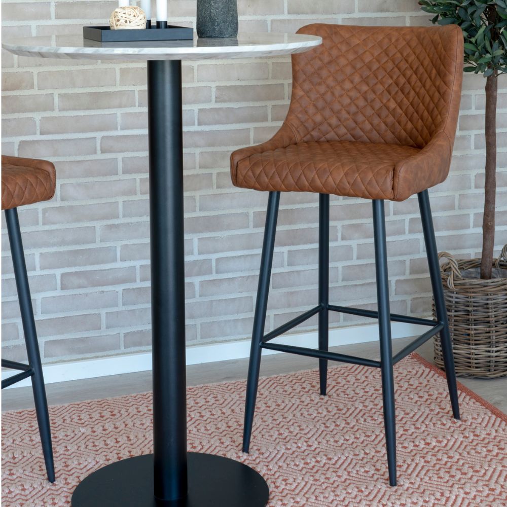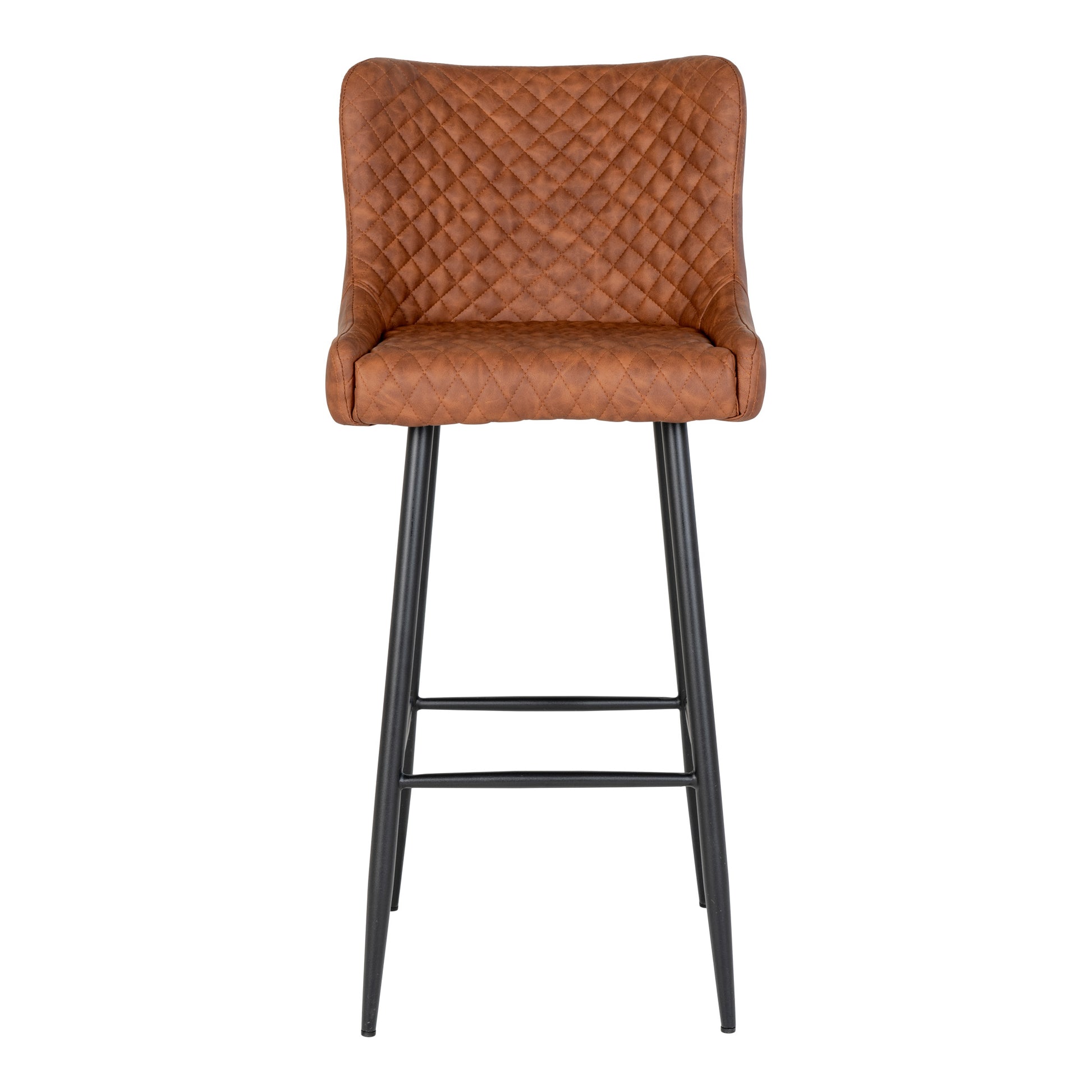 Barstuhl in Vintage-Braun (PU) mit schwarzen Beinen.