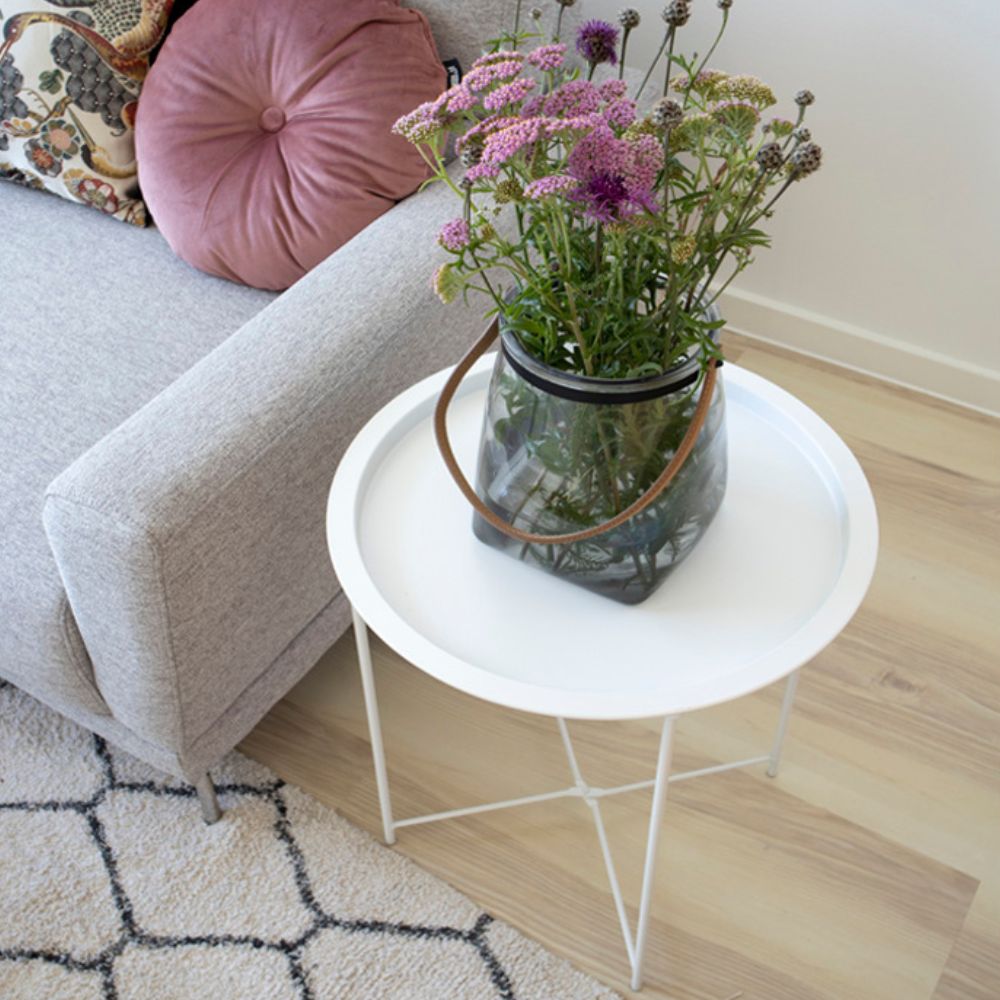 Beistelltisch mit Tablett aus pulverbeschichtetem Stahl in weiss.