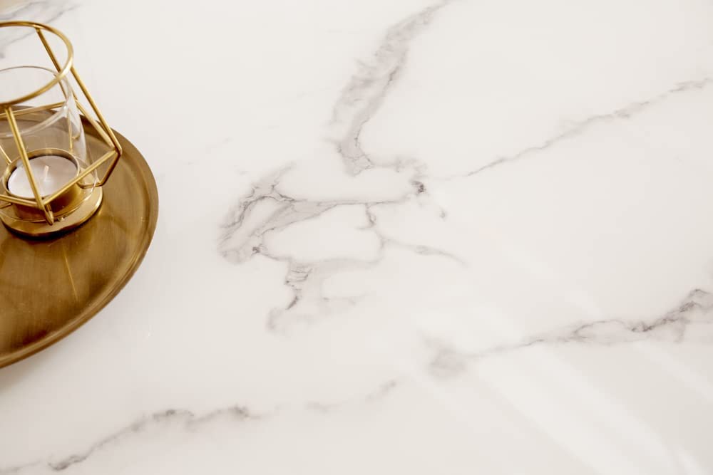 - Farbe: Tischplatte weiß/"marmoriert" - Gestell gold