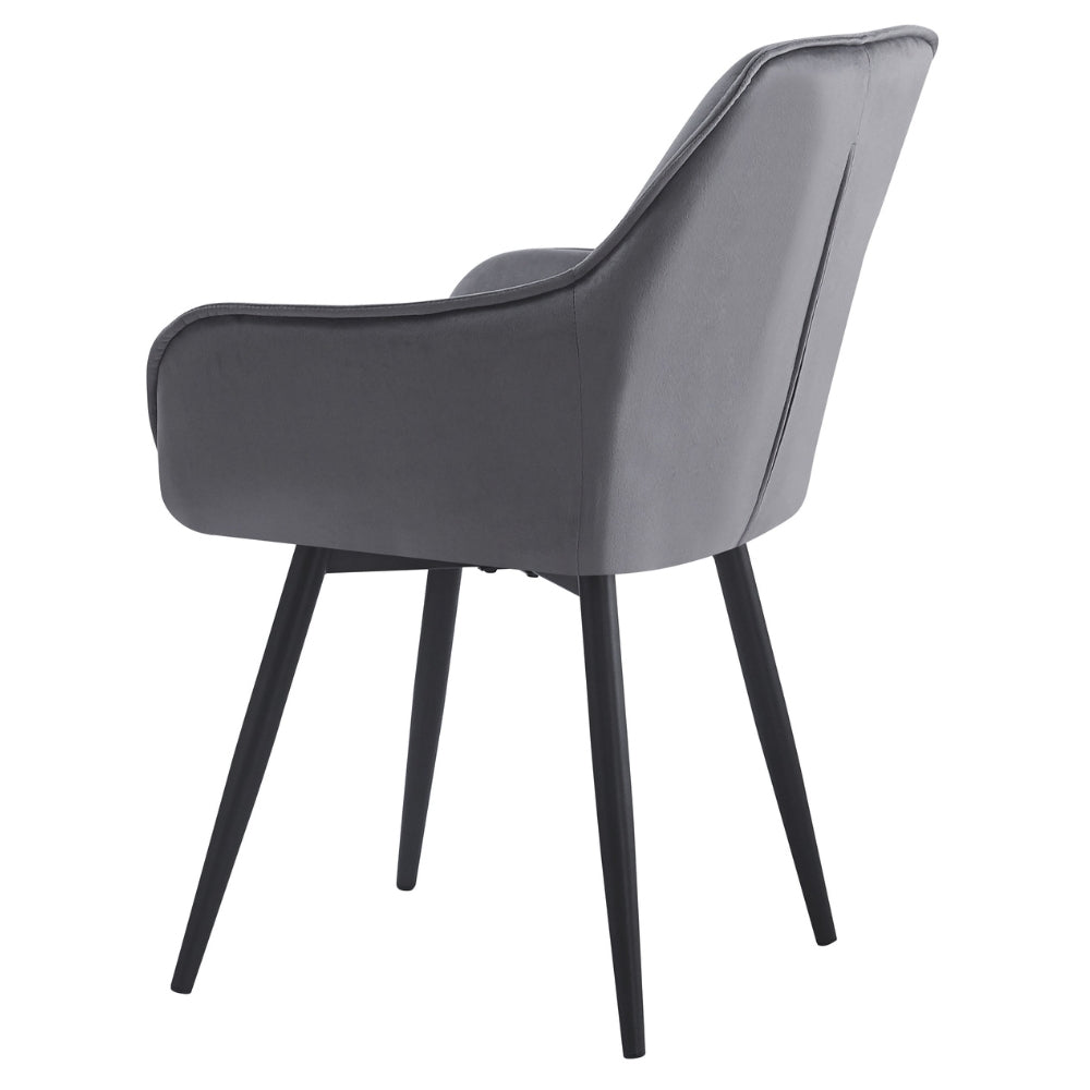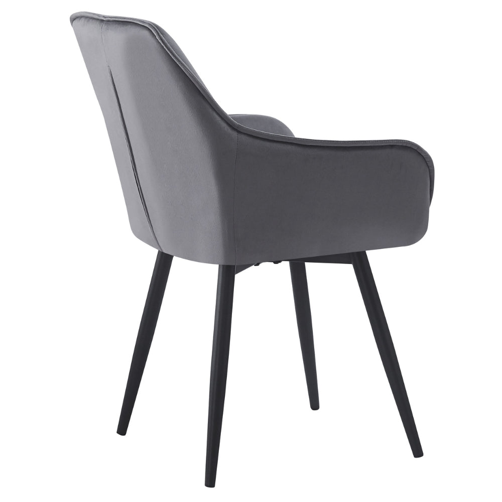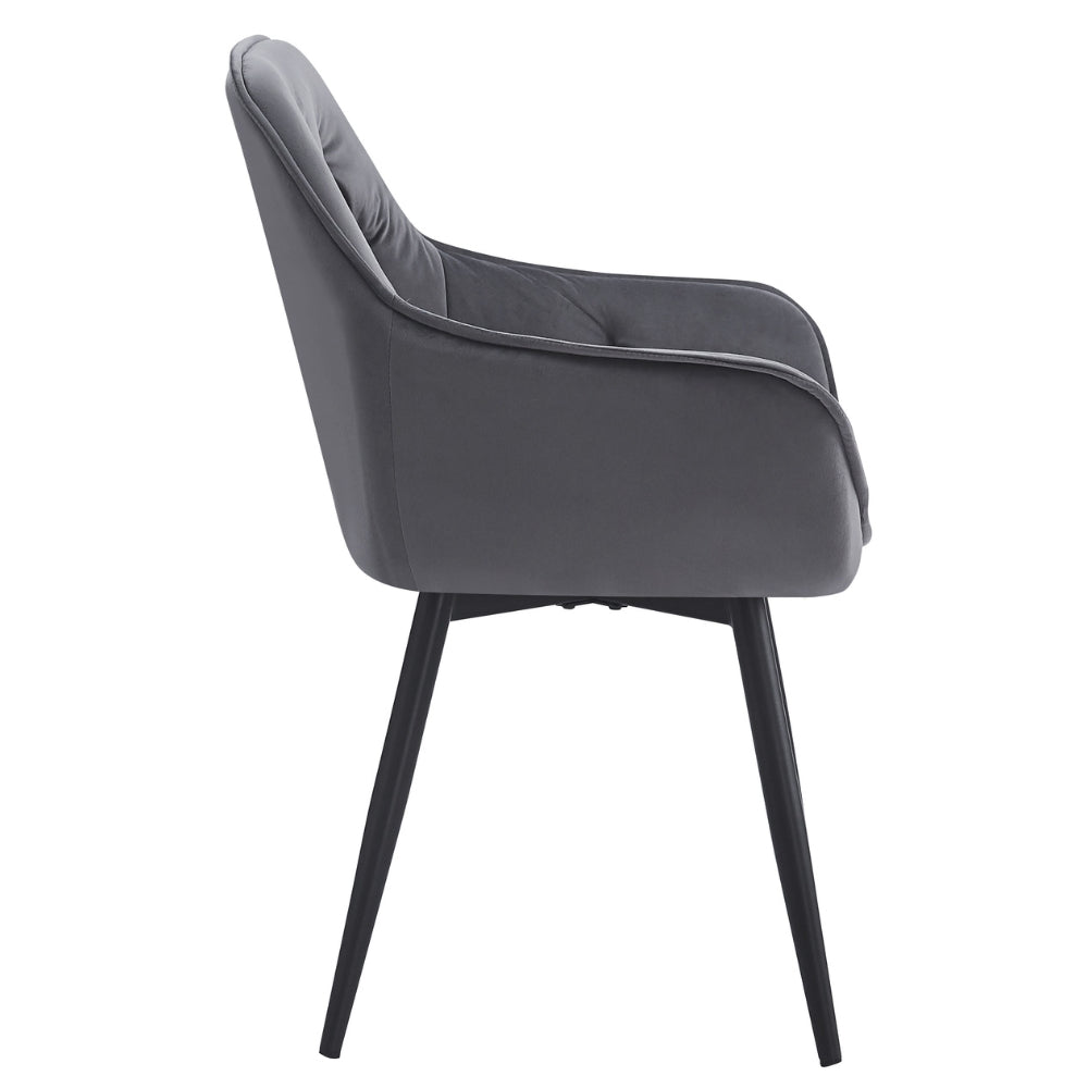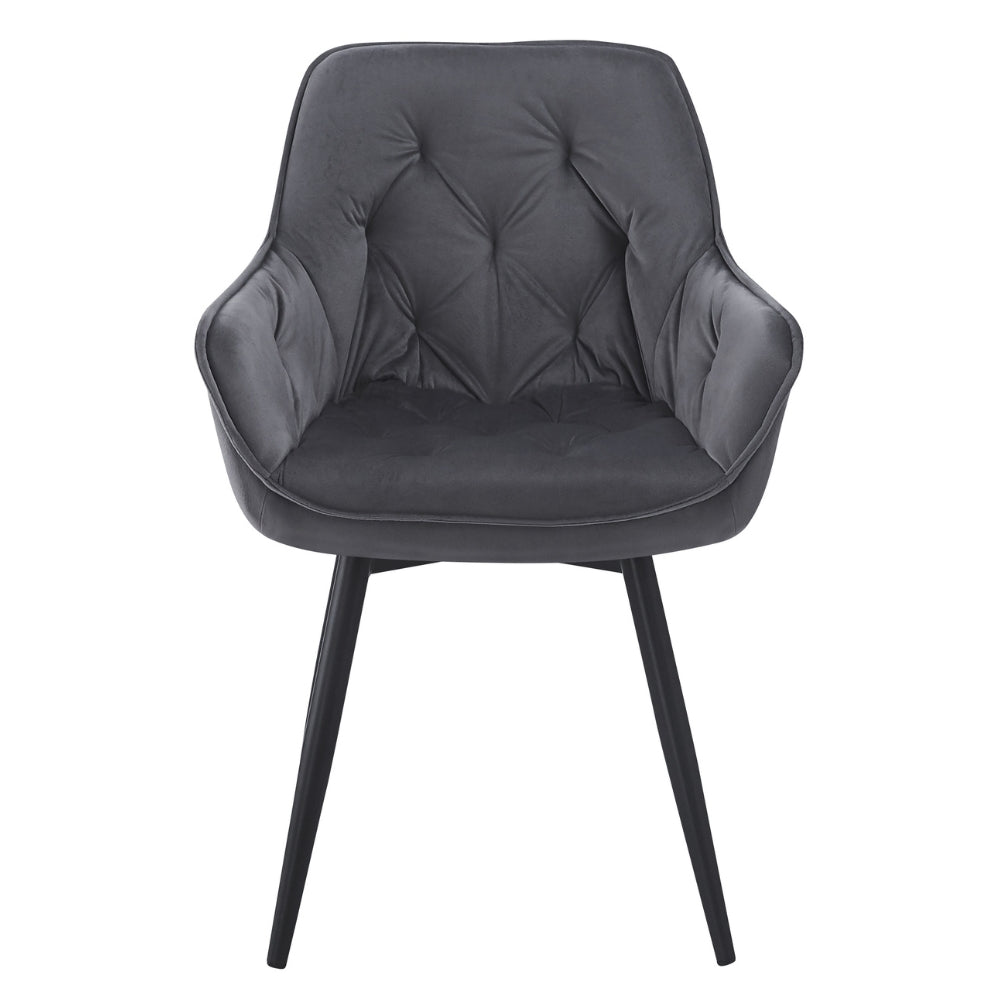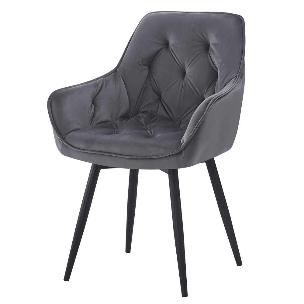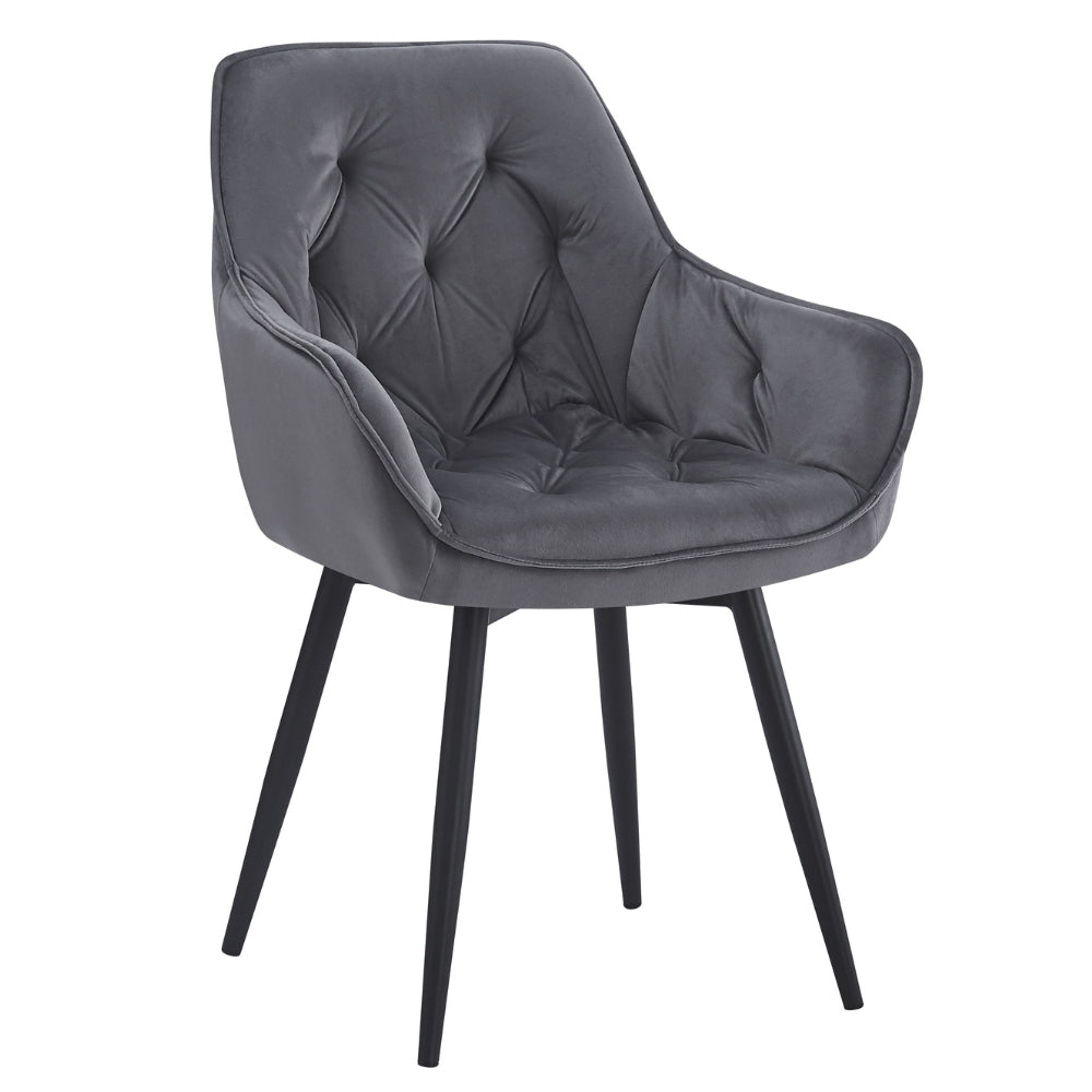 Der UDINA besticht durch seine einzigartige Kombination aus klassischem Chesterfield-Design und zeitgemäßer Ästhetik. Die elegante Ziersteppung und die gepolsterte Sitzfläche verleihen dem Stuhl eine edle Note, während der dunkel-graue Samtbezug für ein luxuriöses Gefühl sorgt.