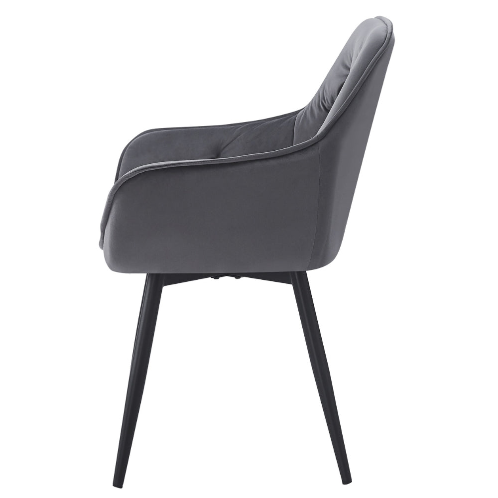 Design Drehstuhl UDINA dunkel-grau Samt Armlehne Ziersteppung
