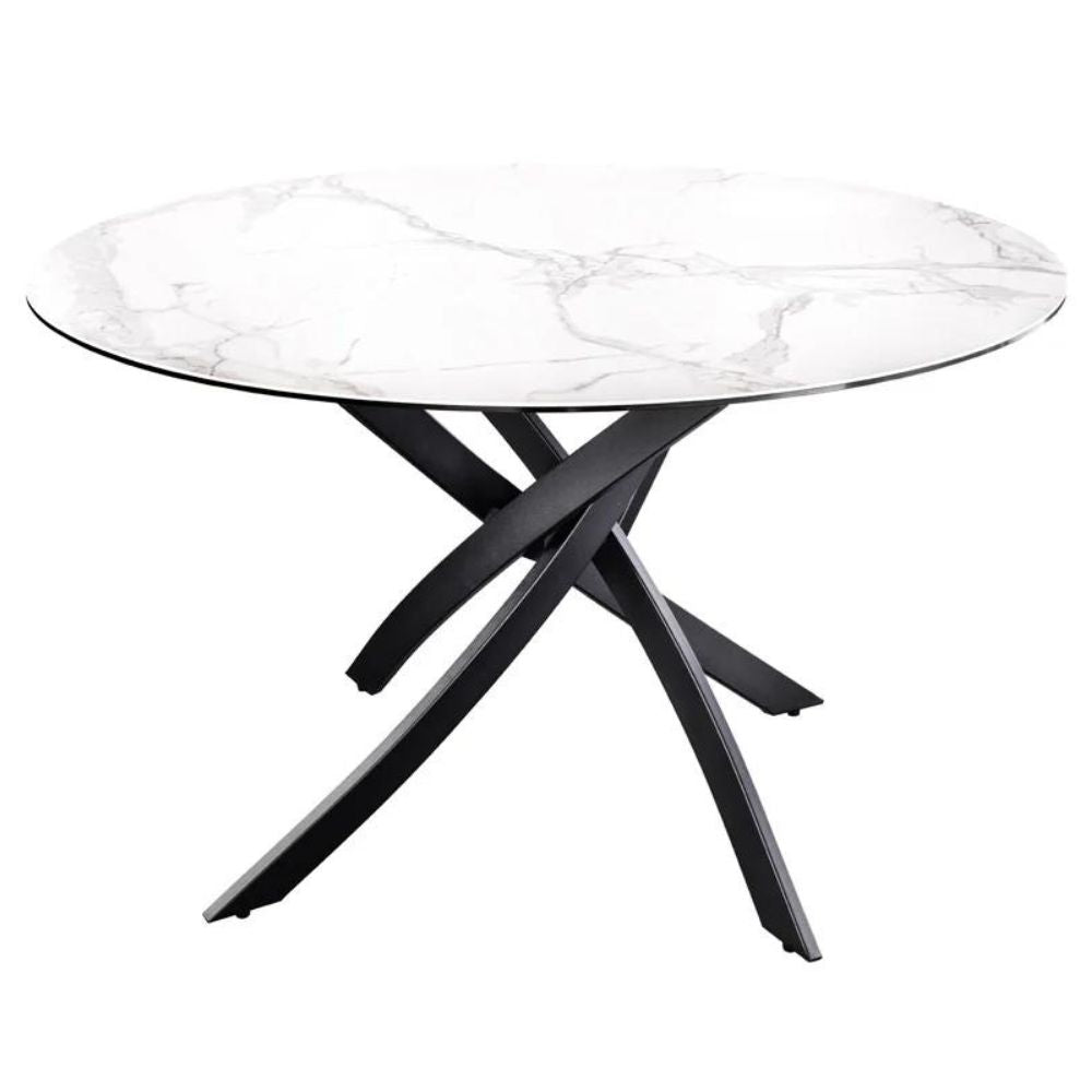 Tauche ein in die atemberaubende Atmosphäre unseres runden Esstisches AMICA mit 120cm Durchmesser in edlem weissen Marmor-Design. Die schwarzen Metallbeine verleihen diesem Möbelstück eine zeitlose Eleganz, die jeden Raum zum Strahlen bringt.