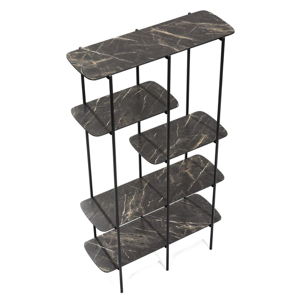 Das 160cm hohe und 90cm breite Regal in dunler Marmoroptik ist ein toller Hingucker mit edler Optik.