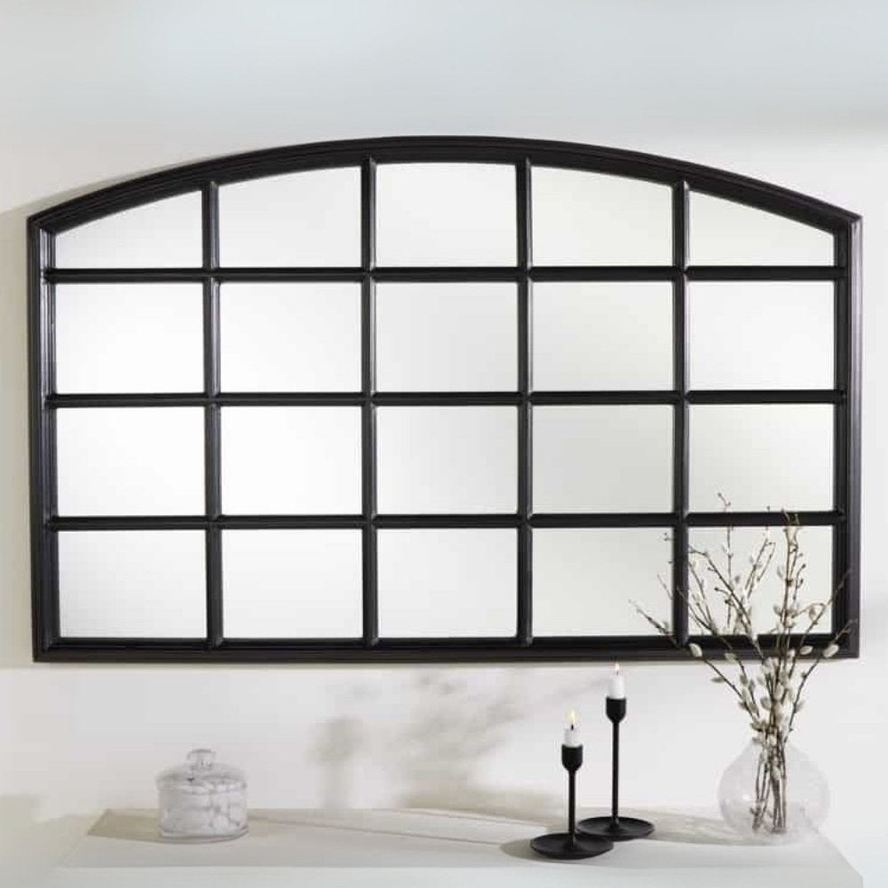 Design Rundbogen-Fenster-Spiegel 120cm schwarz Sprossen Landhaus