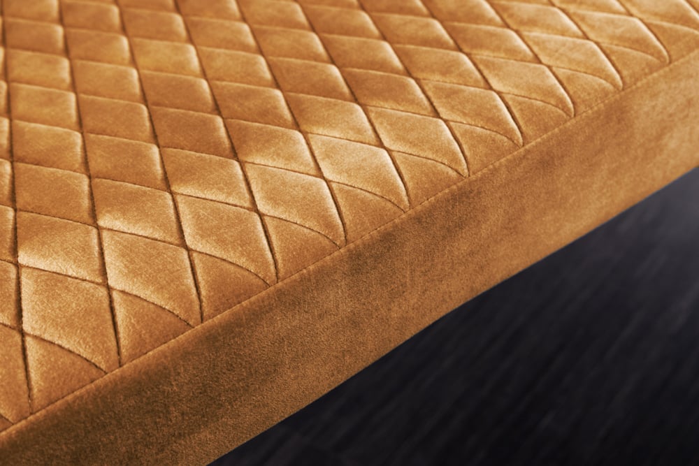 Design Sitzbank FRANCE 160cm Samt senf-gelb Ziersteppung Armlehnen