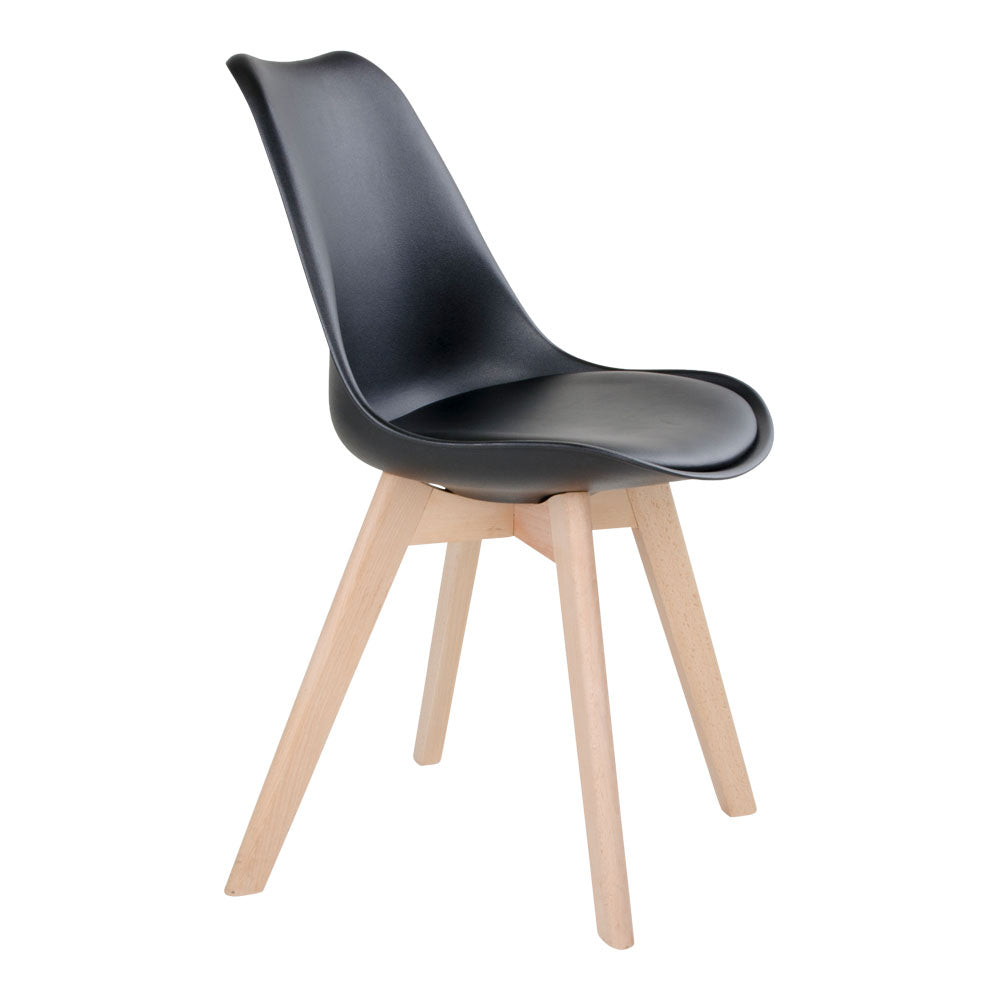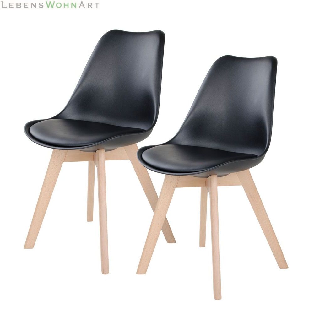 Design Stuhl DELMO (2er Set) schwarz + Holzbeine