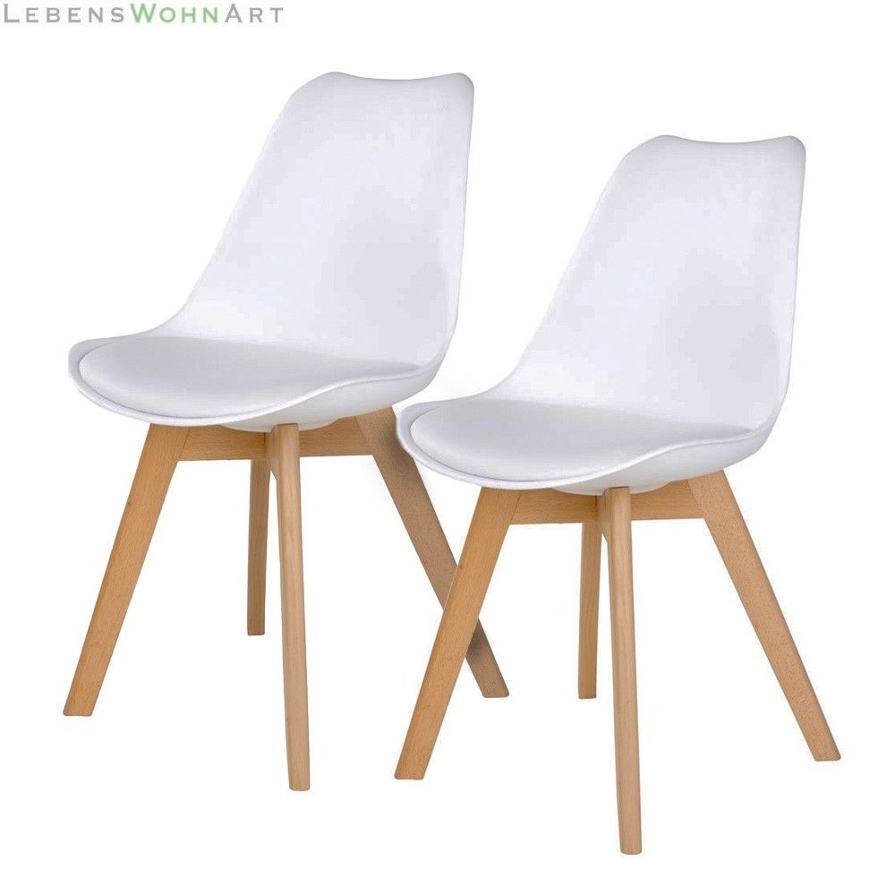 Design Stuhl DELMO (2er Set) weiss + Holzbeine