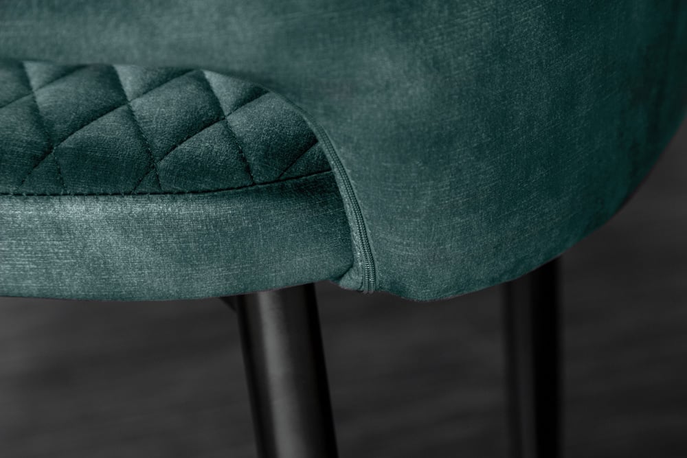 Design Stuhl FRANCE Samt petrol Ziersteppung Armlehnen