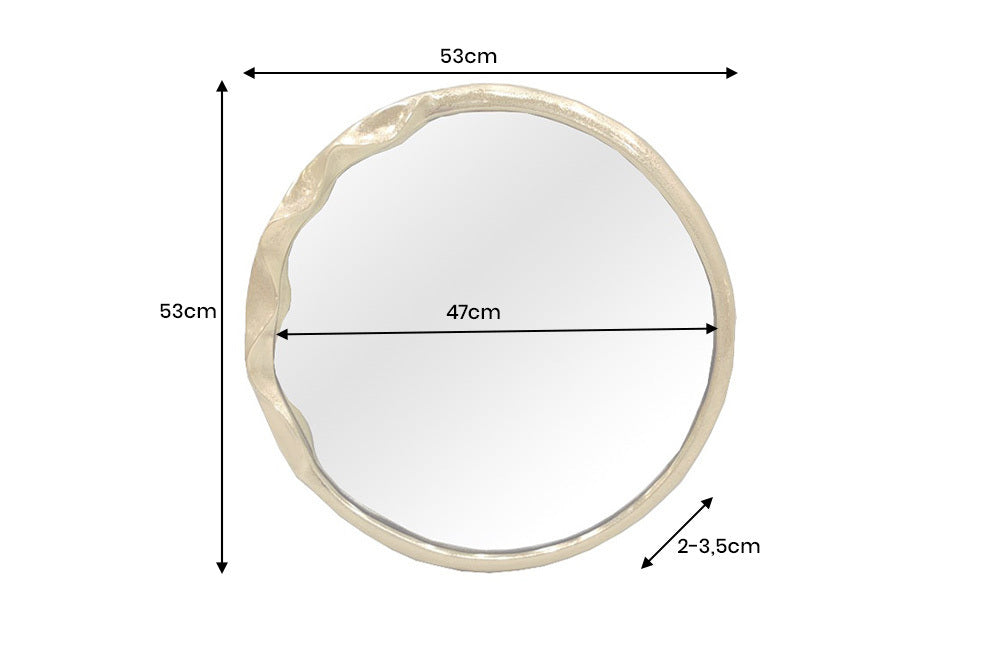 - Maße ca.: 53x53x2-3,5cm (B x H x T) - Spiegelfläche D47 cm - Rahmenbreite 2-3,5cm