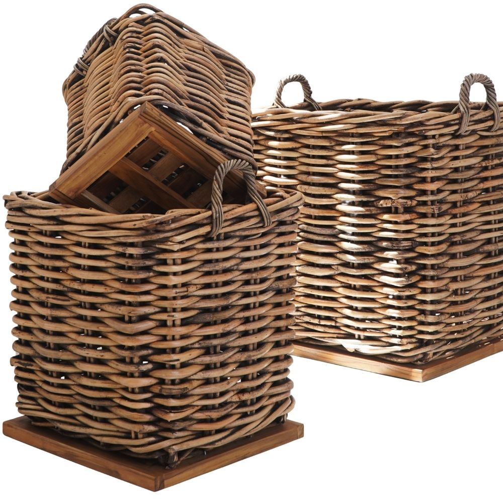 Unser praktische "Helfer" aus sehr dicken Rattansträngen ist robust und wiederstandfähig. Durch die verbaute Bodenplatte aus Teakholz ist er nicht nur extrem standfest, sondern wird auch noch mehr zum absoluten Eyecatcher. Hiermit verstaust Du sehr funktionell und attraktiv Deine Gegenstände / Utensilien des alltäglichen Lebens. Diese bezaubernden Körbe können aber auch zugleich als Übertopf / Pflanzkorb dienen, denn das zeitlose Design lässt sich umstandslos in viele Indoor- oder Outdoor Einrichtungskonzepte einfügen. Der sehr robust geflochtene Korb verfügt zudem über zwei Griffe, die das Tragen des Korbes erleichtern.