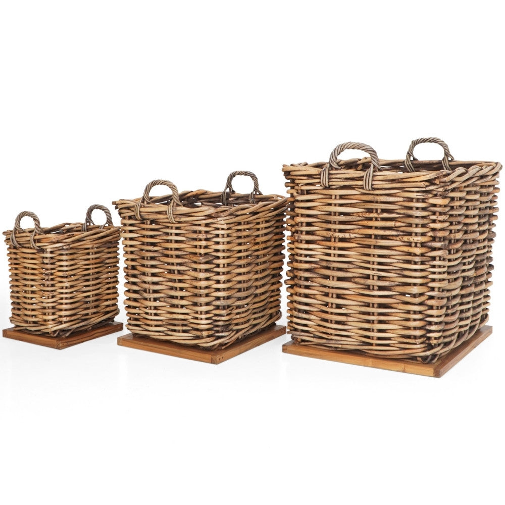 Unser praktische "Helfer" aus sehr dicken Rattansträngen ist robust und wiederstandfähig. Durch die verbaute Bodenplatte aus Teakholz ist er nicht nur extrem standfest, sondern wird auch noch mehr zum absoluten Eyecatcher. Hiermit verstaust Du sehr funktionell und attraktiv Deine Gegenstände / Utensilien des alltäglichen Lebens. Diese bezaubernden Körbe können aber auch zugleich als Übertopf / Pflanzkorb dienen, denn das zeitlose Design lässt sich umstandslos in viele Indoor- oder Outdoor Einrichtungskonzepte einfügen. Der sehr robust geflochtene Korb verfügt zudem über zwei Griffe, die das Tragen des Korbes erleichtern.
