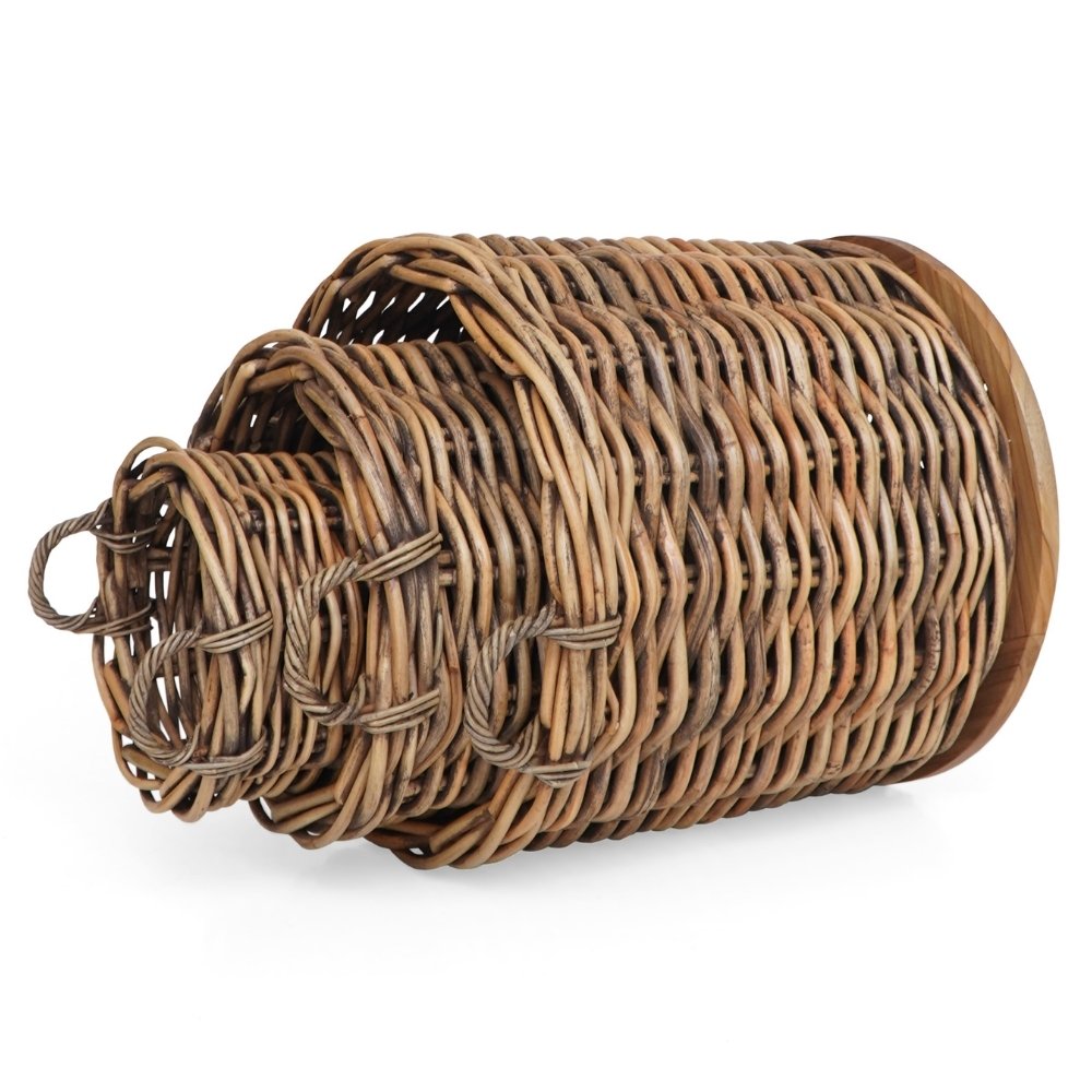 Unser praktische "Helfer" aus sehr dicken Rattansträngen ist robust und wiederstandfähig. Durch die verbaute Bodenplatte aus Teakholz ist er nicht nur extrem standfest, sondern wird auch noch mehr zum absoluten Eyecatcher. Hiermit verstaust Du sehr funktionell und attraktiv Deine Gegenstände / Utensilien des alltäglichen Lebens. Diese bezaubernden Körbe können aber auch zugleich als Übertopf / Pflanzkorb dienen, denn das zeitlose Design lässt sich umstandslos in viele Indoor- oder Outdoor Einrichtungskonzepte einfügen. Der sehr robust geflochtene Korb verfügt zudem über zwei Griffe, die das Tragen des Korbes erleichtern.