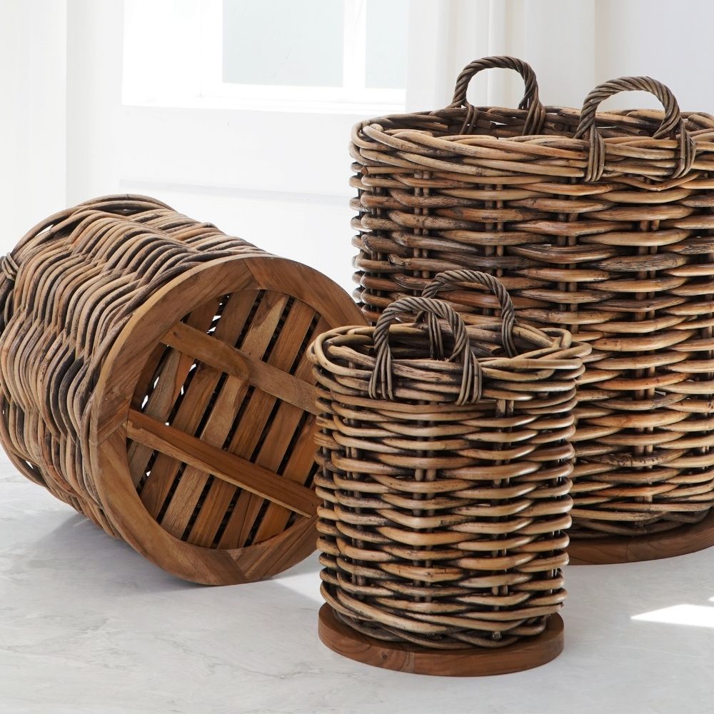 Unser praktische "Helfer" aus sehr dicken Rattansträngen ist robust und wiederstandfähig. Durch die verbaute Bodenplatte aus Teakholz ist er nicht nur extrem standfest, sondern wird auch noch mehr zum absoluten Eyecatcher. Hiermit verstaust Du sehr funktionell und attraktiv Deine Gegenstände / Utensilien des alltäglichen Lebens. Diese bezaubernden Körbe können aber auch zugleich als Übertopf / Pflanzkorb dienen, denn das zeitlose Design lässt sich umstandslos in viele Indoor- oder Outdoor Einrichtungskonzepte einfügen. Der sehr robust geflochtene Korb verfügt zudem über zwei Griffe, die das Tragen des Korbes erleichtern.