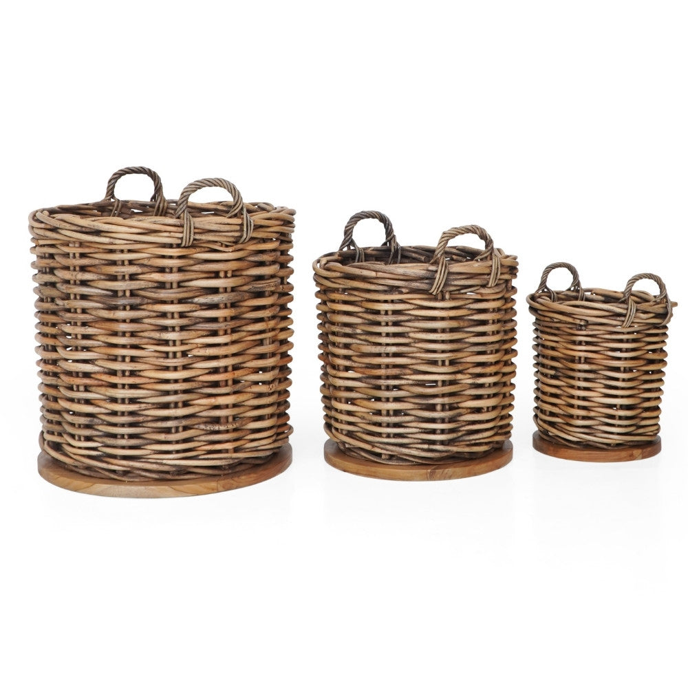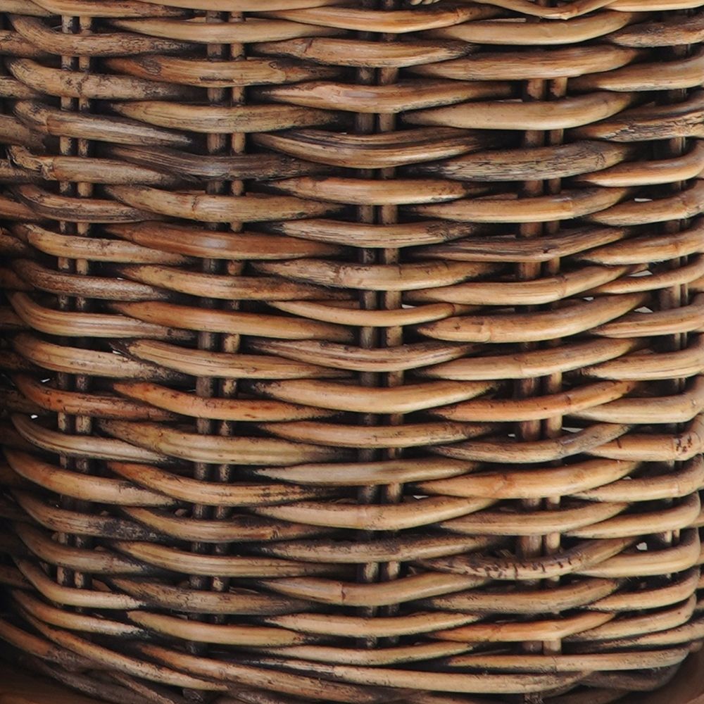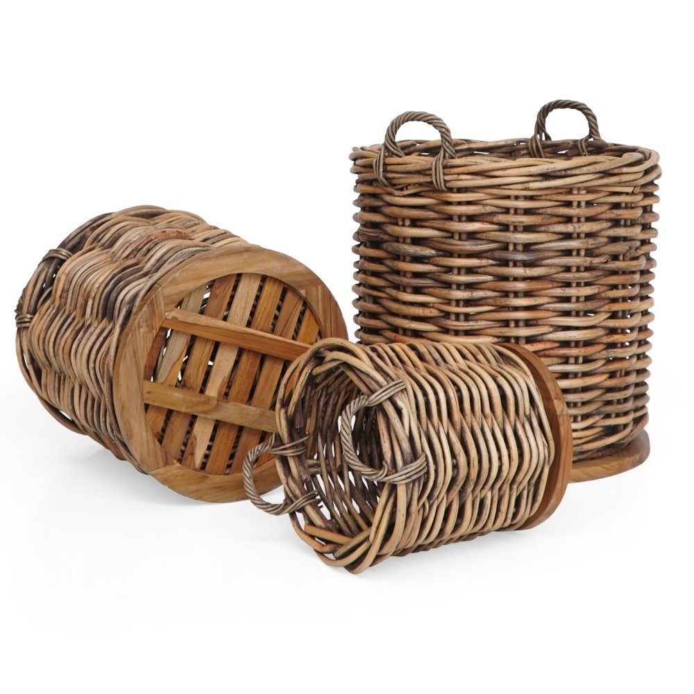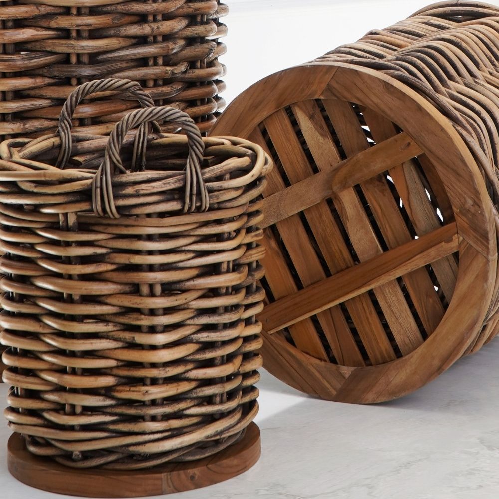 Unser praktische "Helfer" aus sehr dicken Rattansträngen ist robust und wiederstandfähig. Durch die verbaute Bodenplatte aus Teakholz ist er nicht nur extrem standfest, sondern wird auch noch mehr zum absoluten Eyecatcher. Hiermit verstaust Du sehr funktionell und attraktiv Deine Gegenstände / Utensilien des alltäglichen Lebens. Diese bezaubernden Körbe können aber auch zugleich als Übertopf / Pflanzkorb dienen, denn das zeitlose Design lässt sich umstandslos in viele Indoor- oder Outdoor Einrichtungskonzepte einfügen. Der sehr robust geflochtene Korb verfügt zudem über zwei Griffe, die das Tragen des Korbes erleichtern.