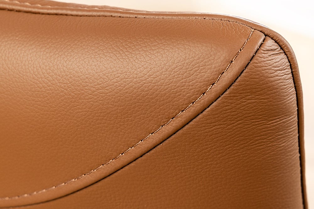 Der Bezug aus hochwertigem, echtem Leder verleiht dem Stuhl eine edle, sinnliche Ausstrahlung. Cognac wirkt zugleich klassisch und modern – harmonisch in minimalistischen Interiors ebenso wie in opulenteren Wohnstilen. -