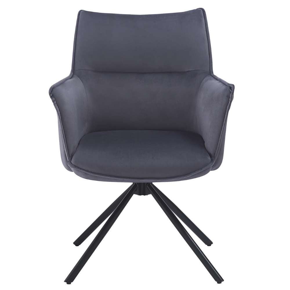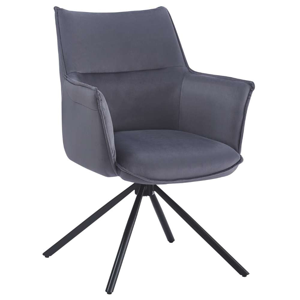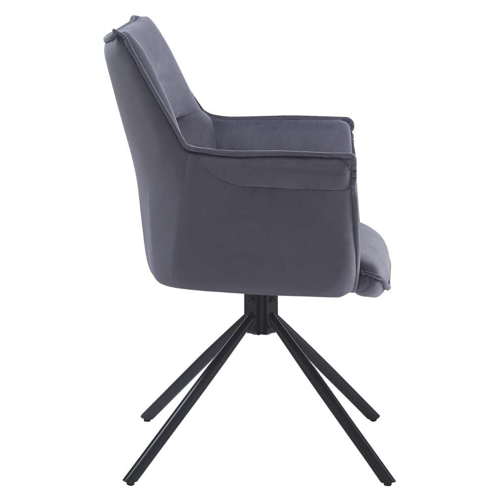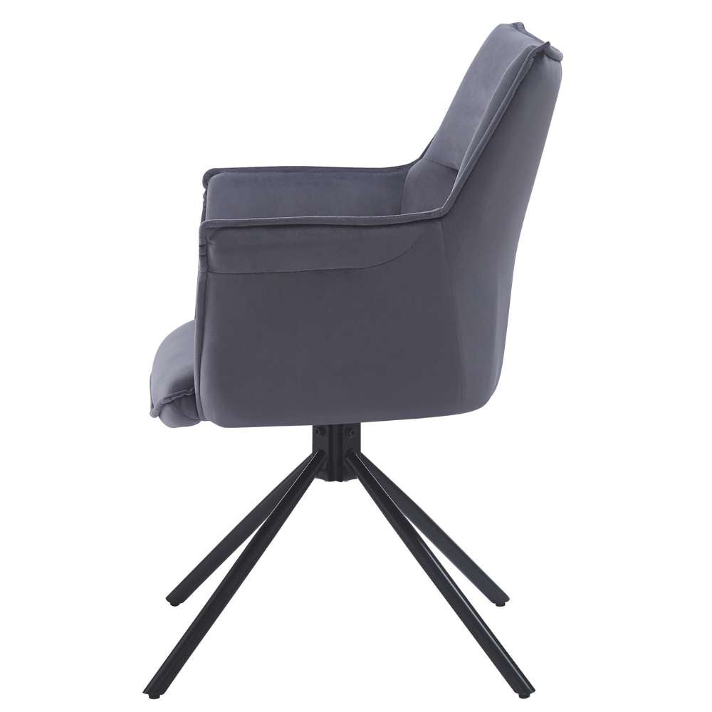 Drehbarer Design Stuhl AURELIA dunkel-grau Samt Metallgestell 360°