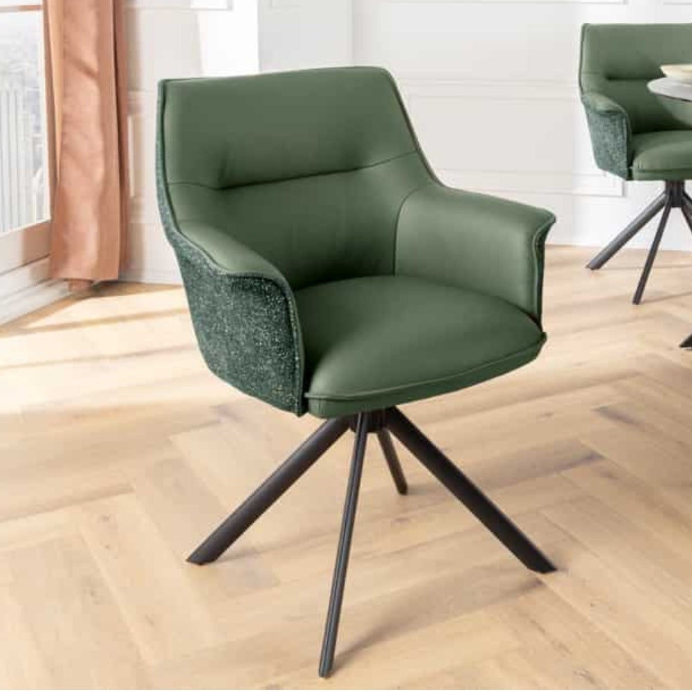 Drehbarer Echtleder Stuhl GEORGE grün mit Armlehne Strukturstoff