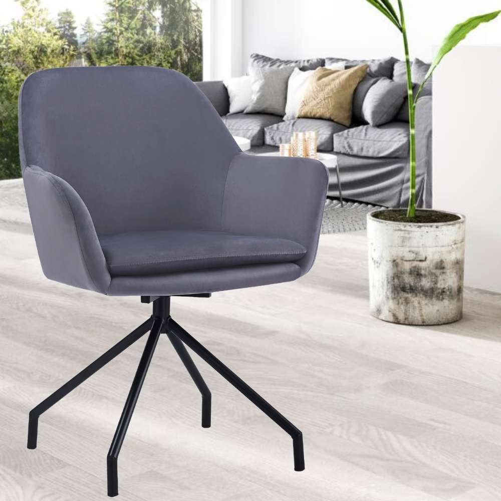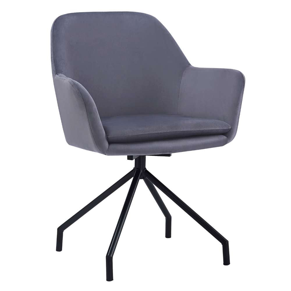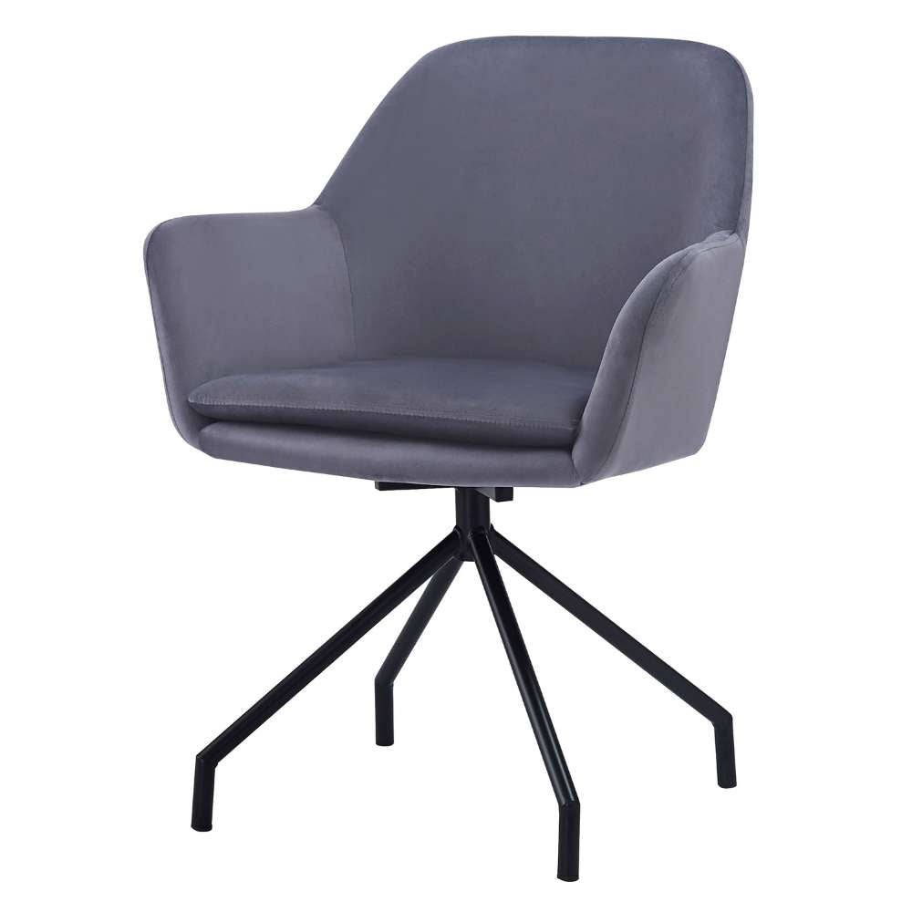 Drehbarer Stuhl JUDIKA dunkel-grau Samt 360° mit Armlehne Metallbeine