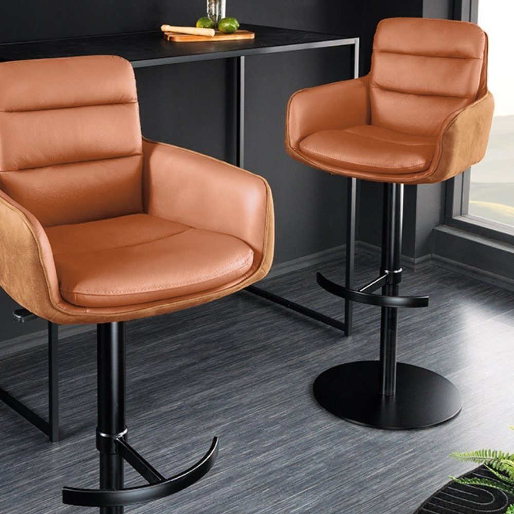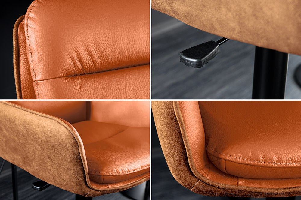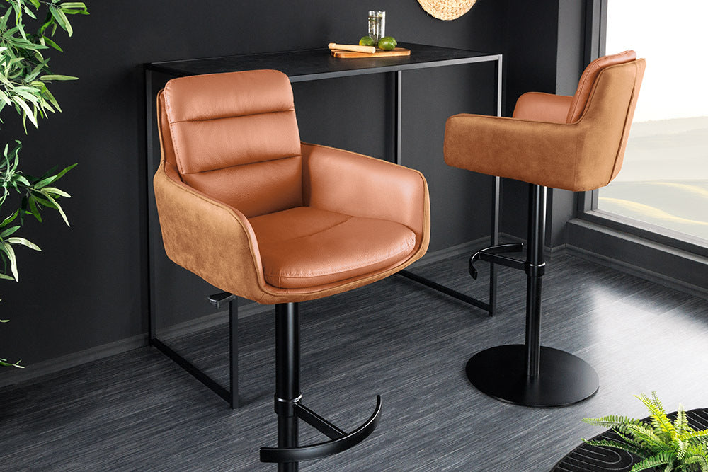 Echtleder Barstuhl CHARLES cognac höhenverstellbar drehbar Armlehnen