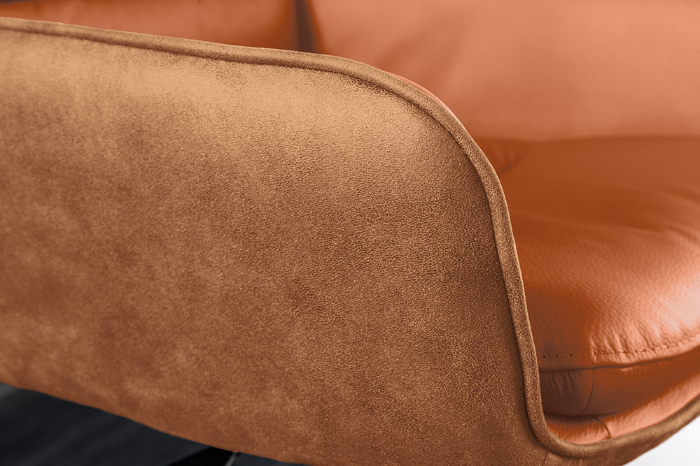 Das warme, geschmeidige Echtleder der Sitzfläche veredelt Dein Raumgefühl; die Microfaser-Unterseite bringt Komfort und Langlebigkeit. Zusammen erzeugen sie ein haptisches Erlebnis, das Du spürst, sobald Du Dich setzt. -