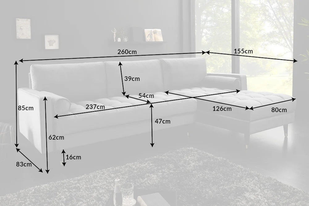 - Sitztiefe ca.: 54cm (mit Kissen) - 68cm (ohne Kissen) / Sitzbreite 237cm (ohne Kissen) / Sitzhöhe 47cm