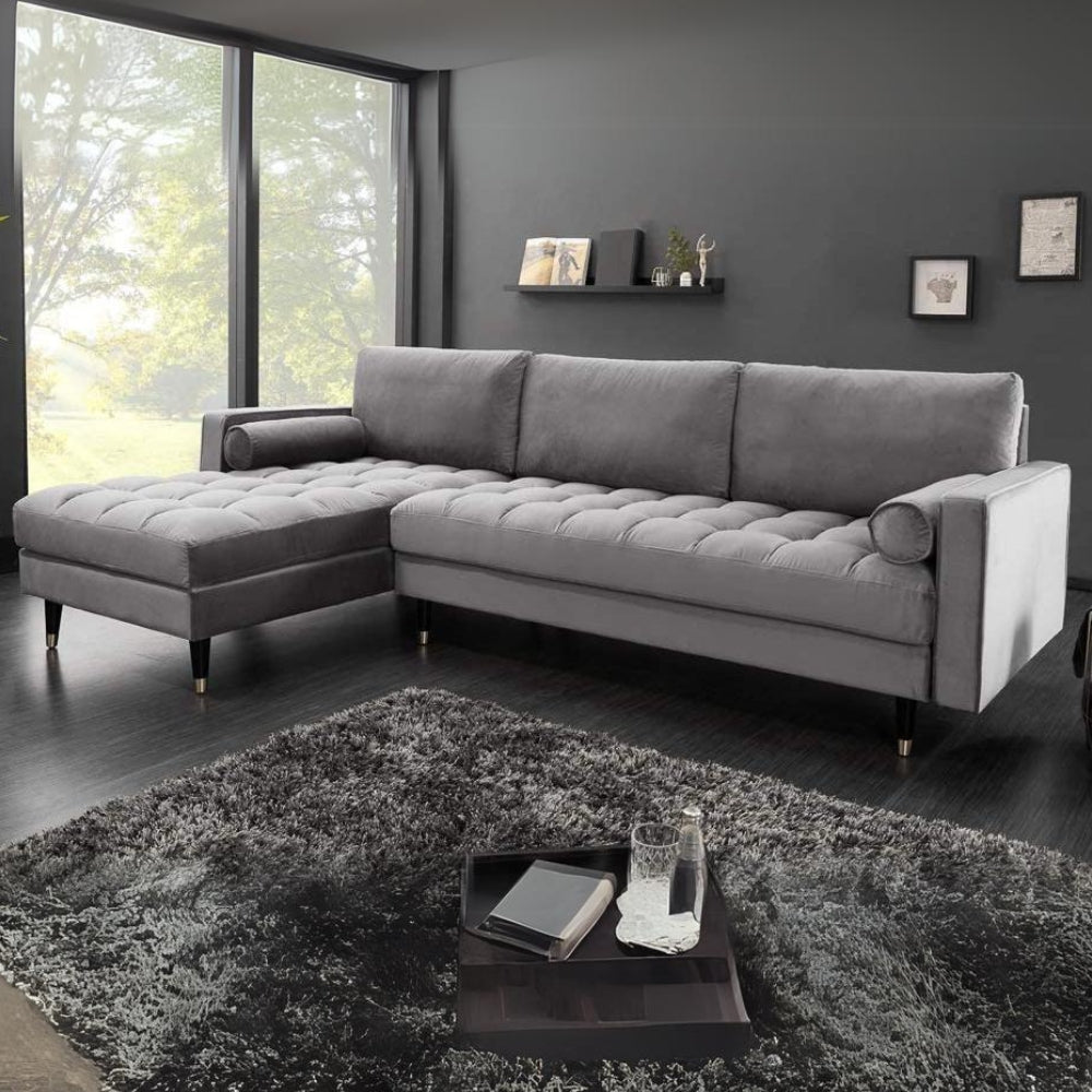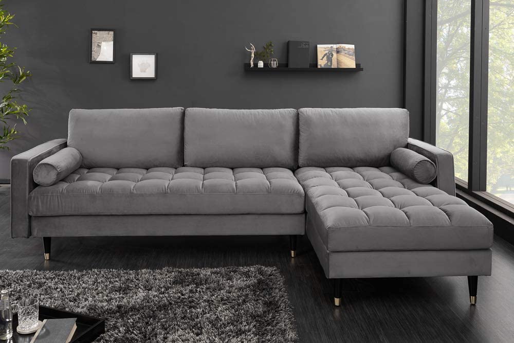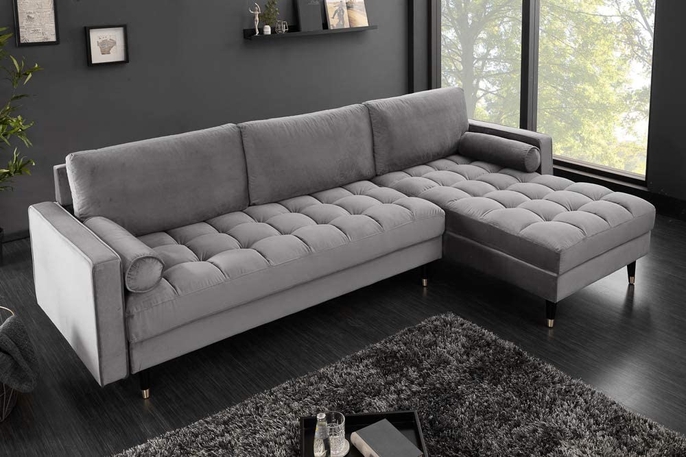 Ecksofa 260cm Ottomane beidseitig COMFORT grau Samt Federkern