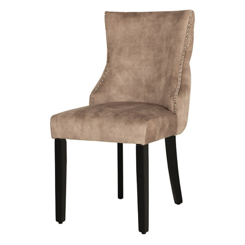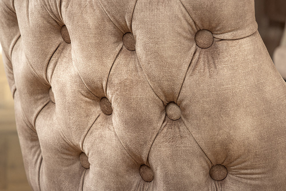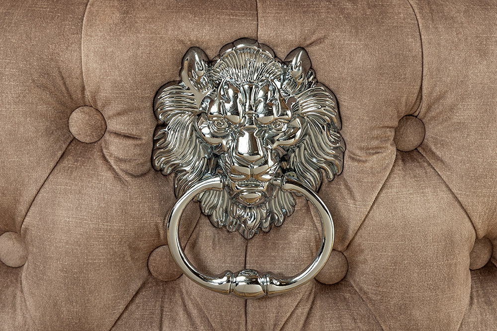 Edler Stuhl LEON Samt beige Löwenkopf Nieten Chesterfield
