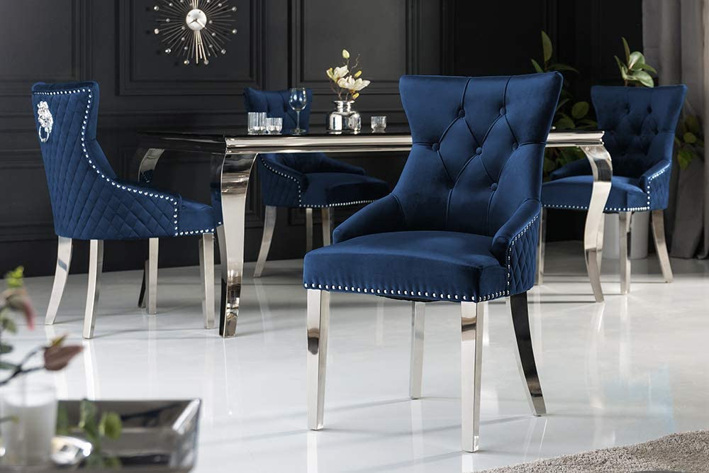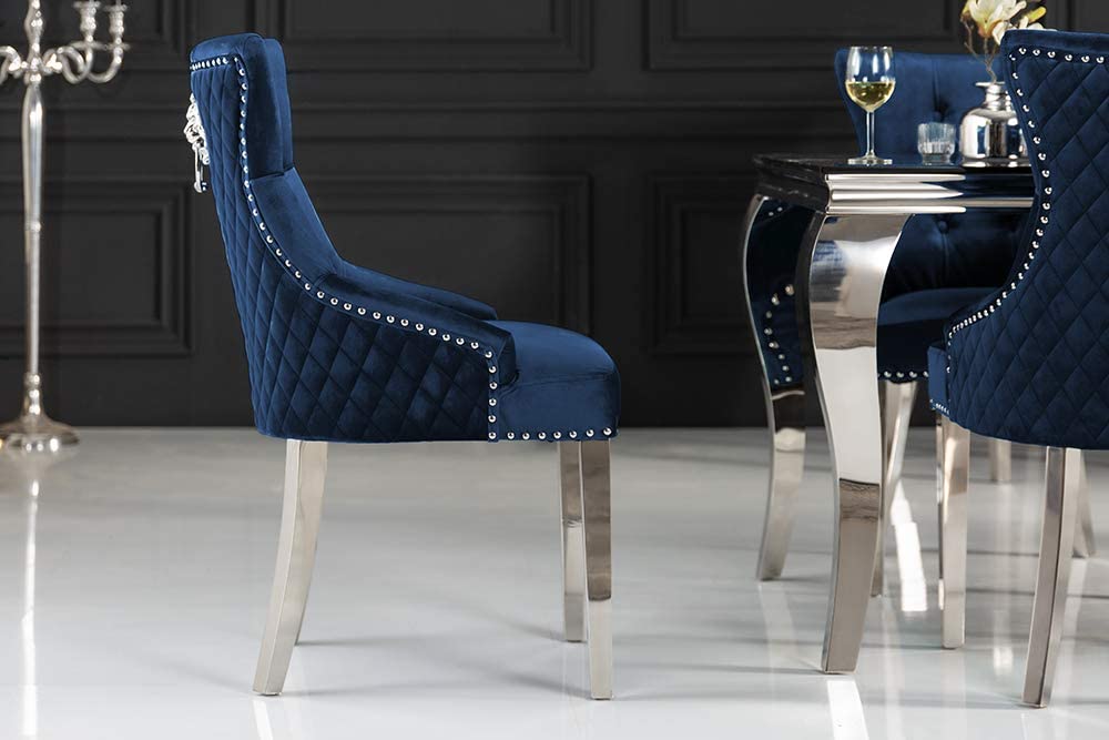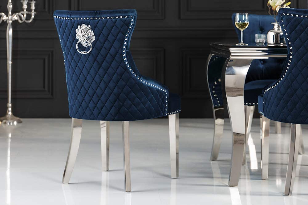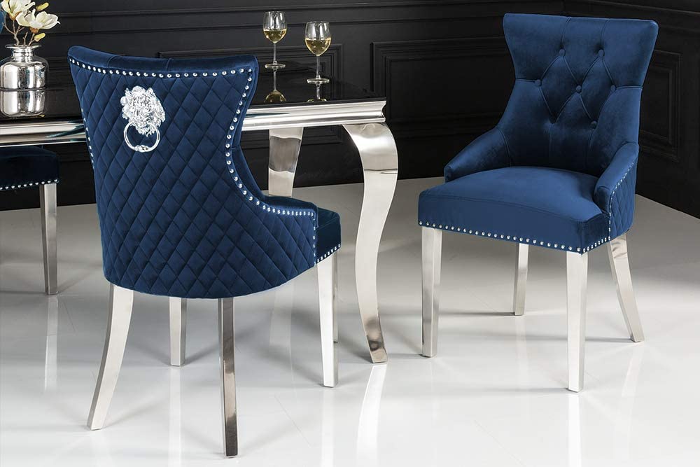 Edler Stuhl LEON Samt blau Löwenkopf Chesterfield