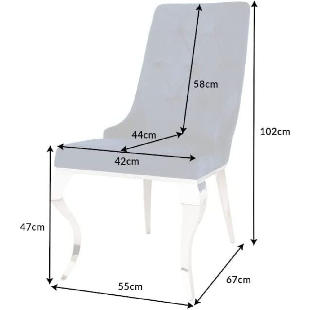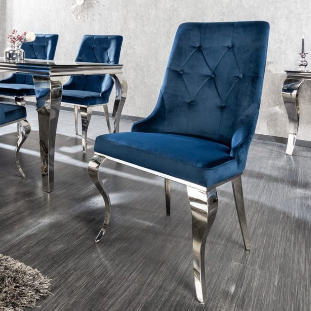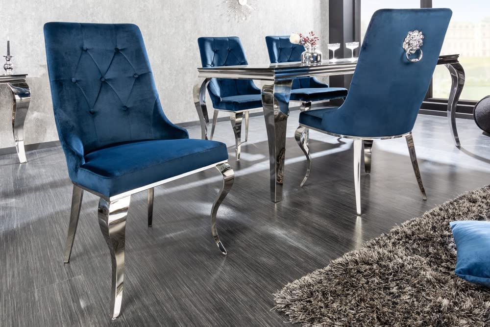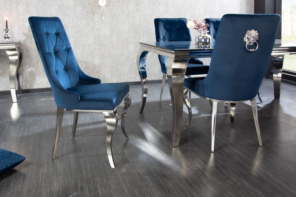 Platzieren Sie sich und freuen Sie sich auf einen neuen Lieblingsplatz am Tisch! Unsere LION Stühle kombinieren den höchsten Sitzkomfort mit einem stilvollen Design. Der Stuhl verfügt über eine hohe Rückenlehne und eine Polsterung, die für maximalen Komfort sorgen. Außerdem sind wunderschöne Zierknöpfe an das bekannte Chesterfield Design erinnern. Der Samtbezug und die geschwungenen silbernen Füße verleihen dem Stuhl seinen einzigartigen Barock-Look.