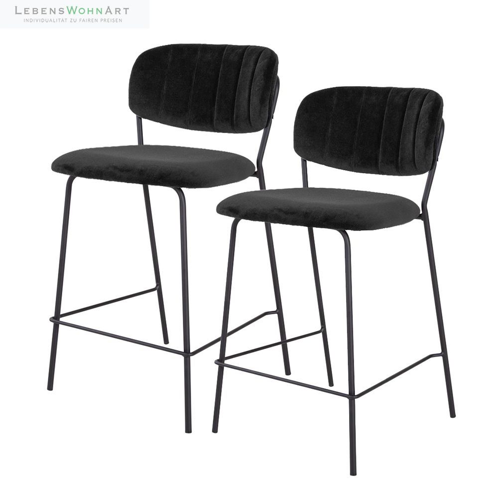 Vor allem die gut gepolsterte Sitzfläche aus Samt in einem eleganten Schwarz zeichnet diesen beliebten Barhocker aus. Die stabile Konstruktion und die bequeme Polsterung laden ein zum Verweilen und ermöglichen es, lange Cocktails zu genießen.