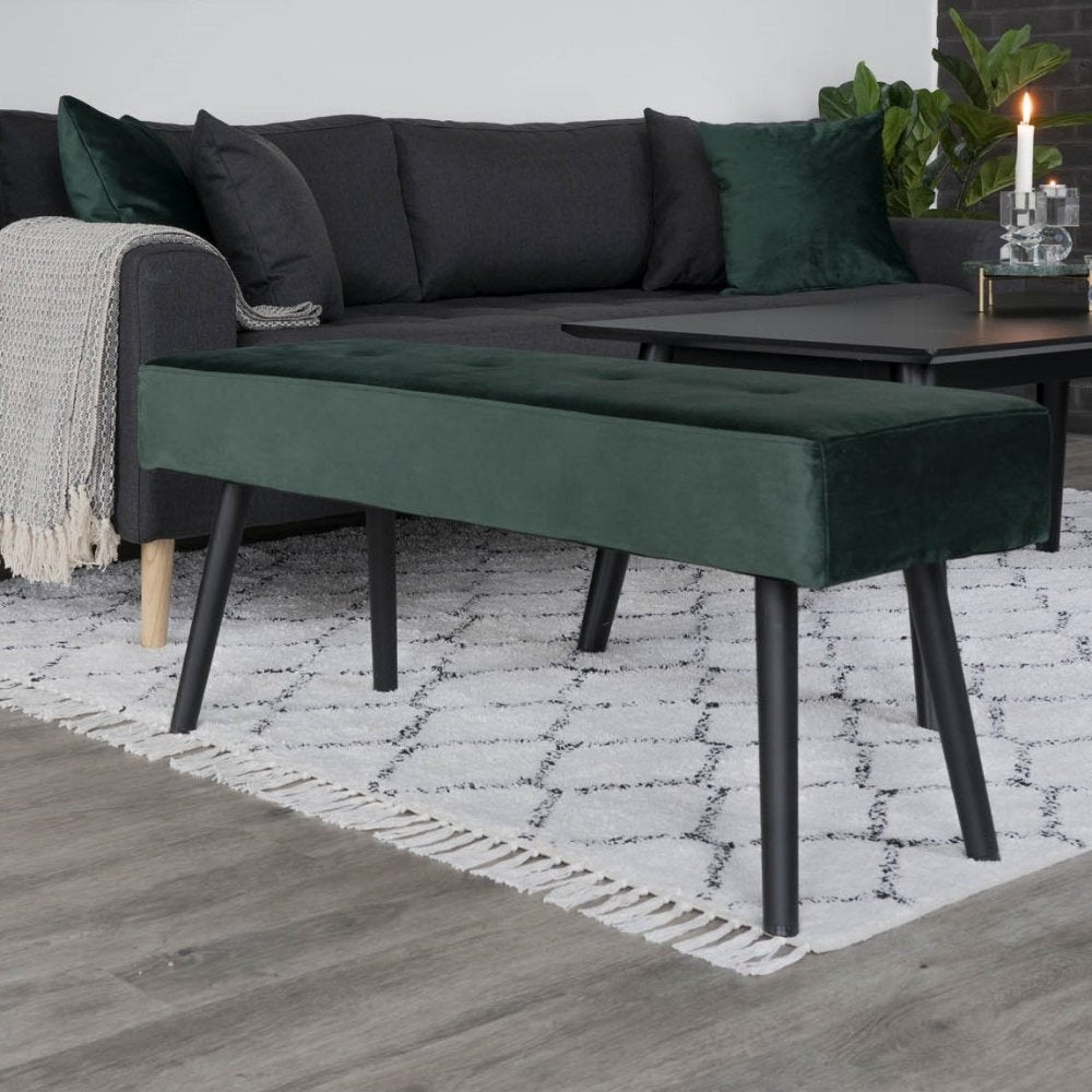 Mit der Sitzbank BISKY kannst du in jedem Raum eine angenehme Sitzecke schaffen. Ein edler Samtstoff bedeckt die Sitzfläche. Die schwarzen pulverbeschichteten Beine der Sitzbank sorgen für einen stabilen Stand und verleihen ihr einen modernen Look. Wir empfehlen Ihnen, die Sitzbank mit anderen Möbeln im minimalistischen Stil zu kombinieren, um ein harmonisches Ambiente zu schaffen.