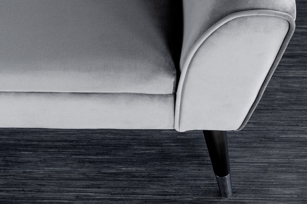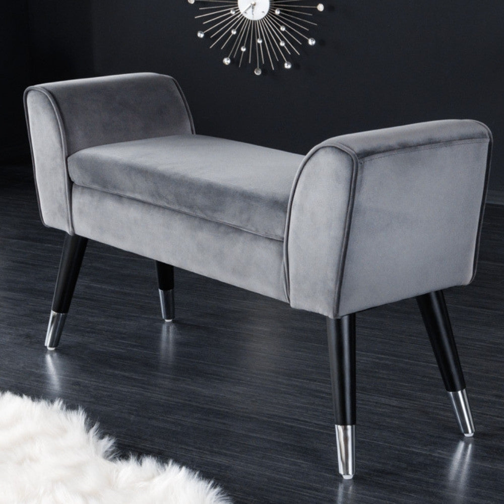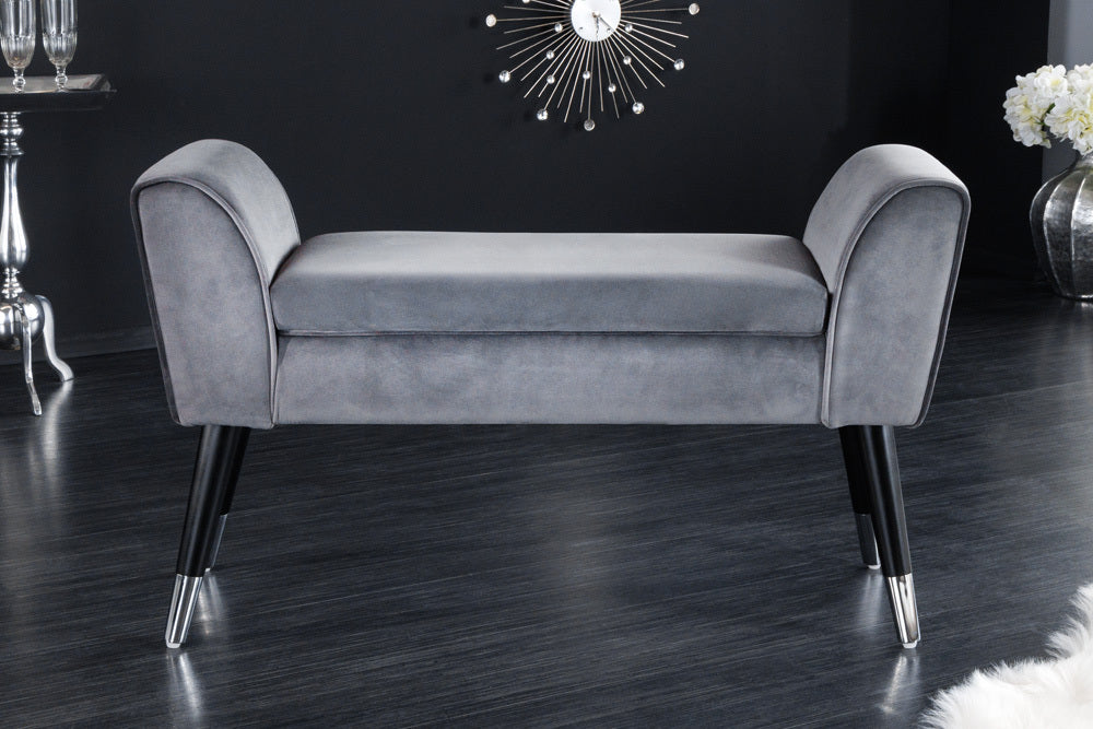 Elegante Sitzbank CAROLIN 90cm grau Samt Armlehne