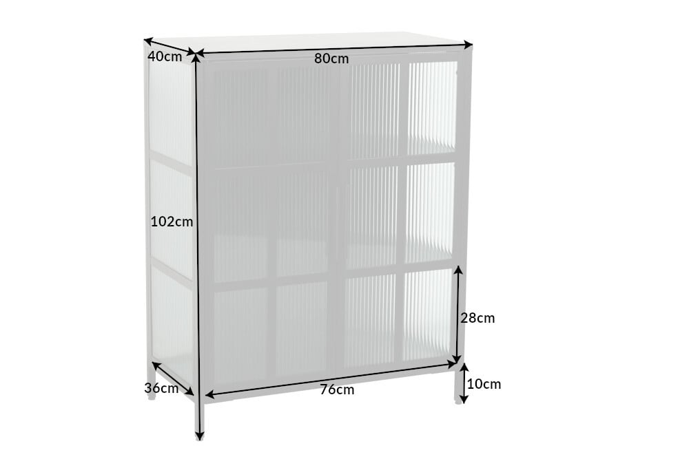 - Maße ca.: 80x102x40cm (BxHxT) - Füße ca.2x10x2cm - Fachgrößen: 76x28x36cm (3x) - Glasstärke 5mm - Metallstärke 6mm