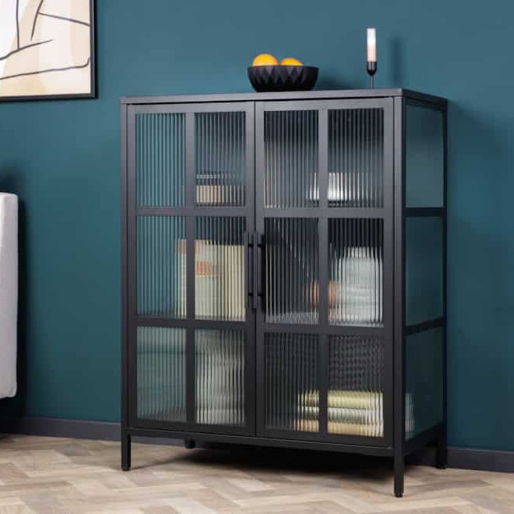 Dann ist unsere Vitrine ACERO genau das Richtige für Dich! Mit einer Breite von 80cm und einer Höhe von 102cm in elegantem Schwarz-Metall-Design passt sie perfekt in viele Wohnräume.