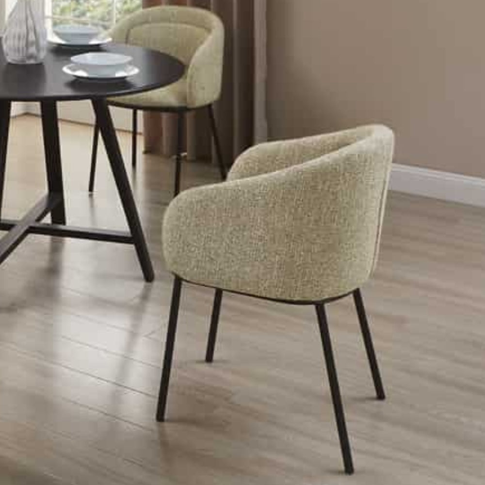 Eleganter Design Stuhl MADRID beige Strukturstoff mit Armlehne