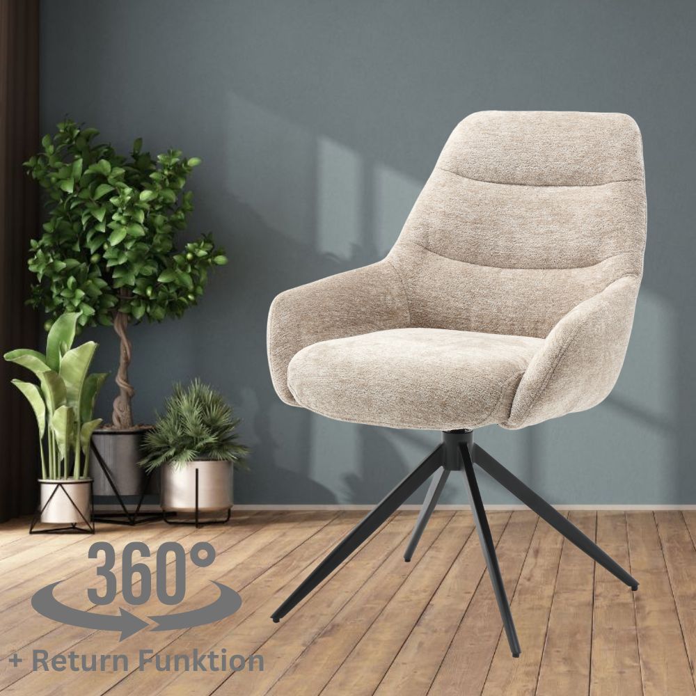 Dank der 360°-Dreh und Returnfunktion bist Du in deinen Bewegungen völlig frei. Ob am Esstisch, im Home-Office oder als gemütlicher Lesesessel - der AITANA passt sich mühelos Deinen Bedürfnissen an. Die praktischen Armlehnen bieten zusätzlichen Komfort und Unterstützung.