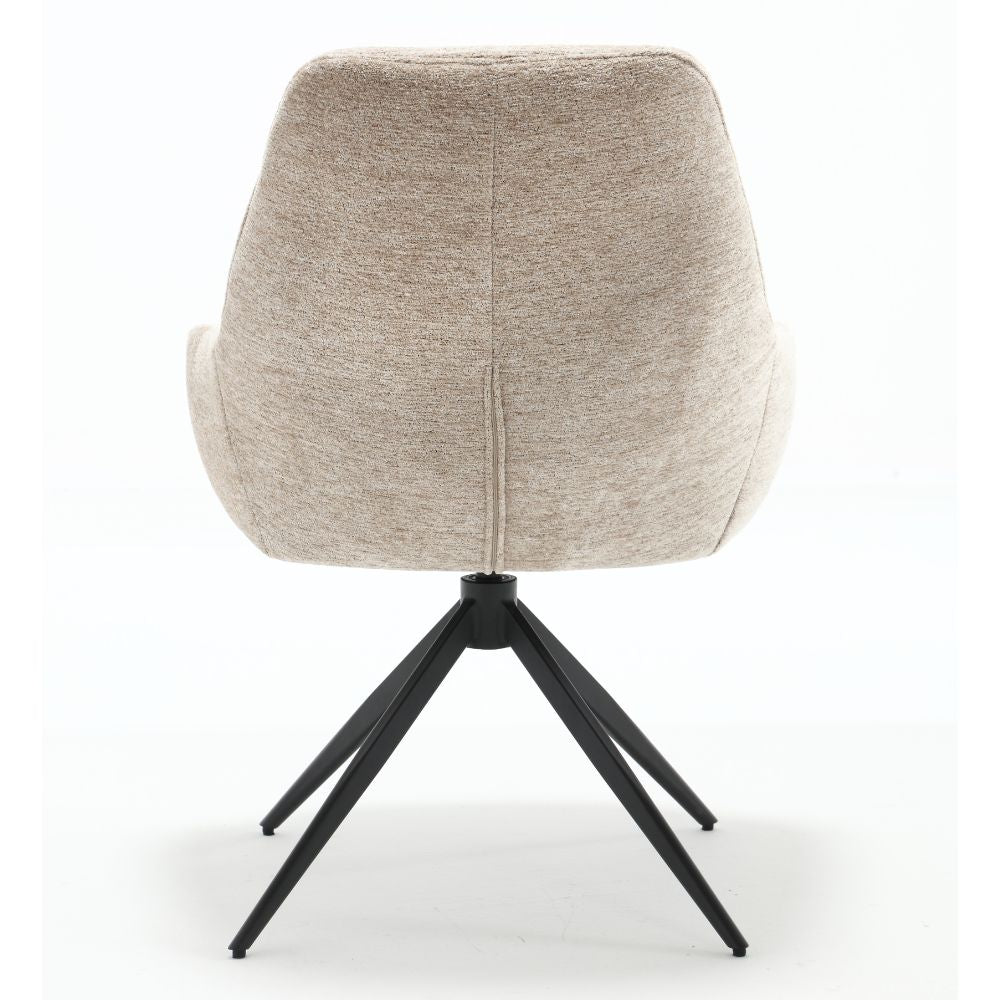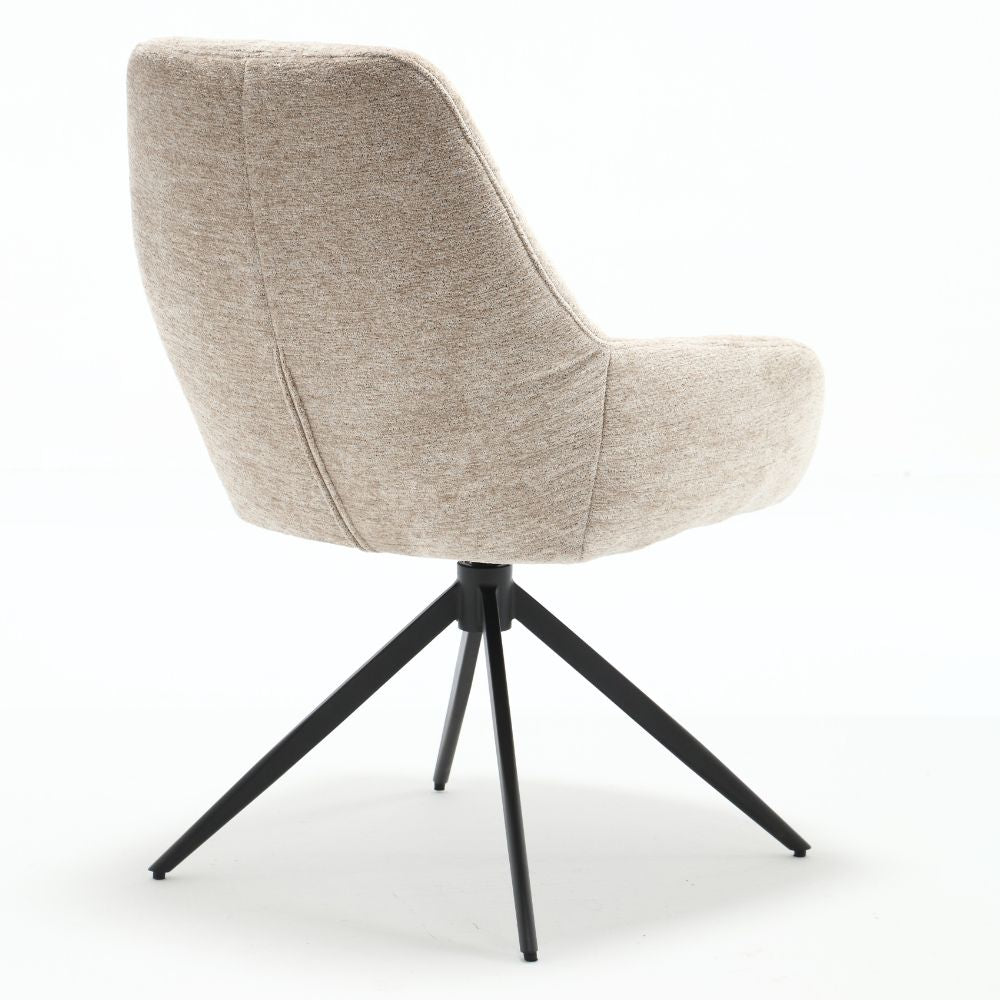 Der Drehstuhl AITANA besticht durch sein zeitloses Retro-Design, das sich harmonisch in verschiedene Einrichtungsstile einfügt. Der weiche Webstoff-Bezug verleiht dem Stuhl eine edle Note und ist besonders angenehm auf der Haut. Die schwarzen Metallbeine in Pyramidenform sorgen nicht nur für einen stabilen Stand, sondern setzen auch einen stilvollen Kontrast.