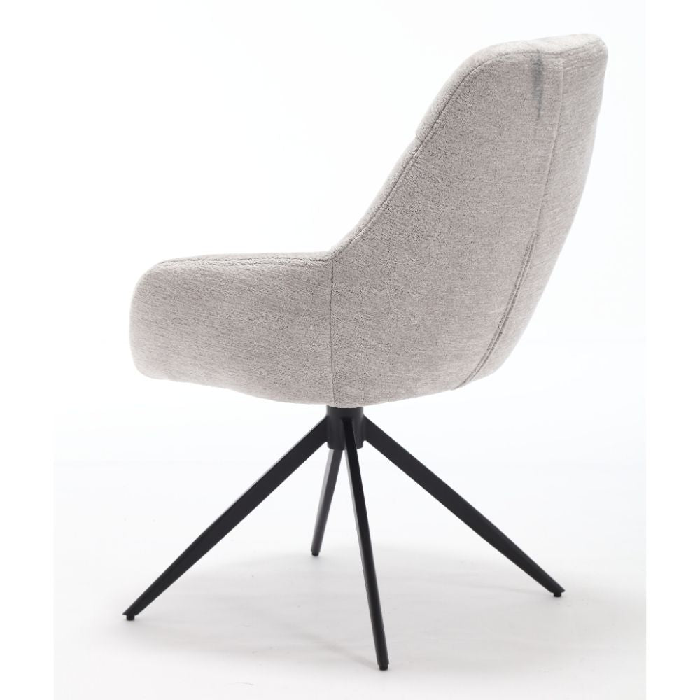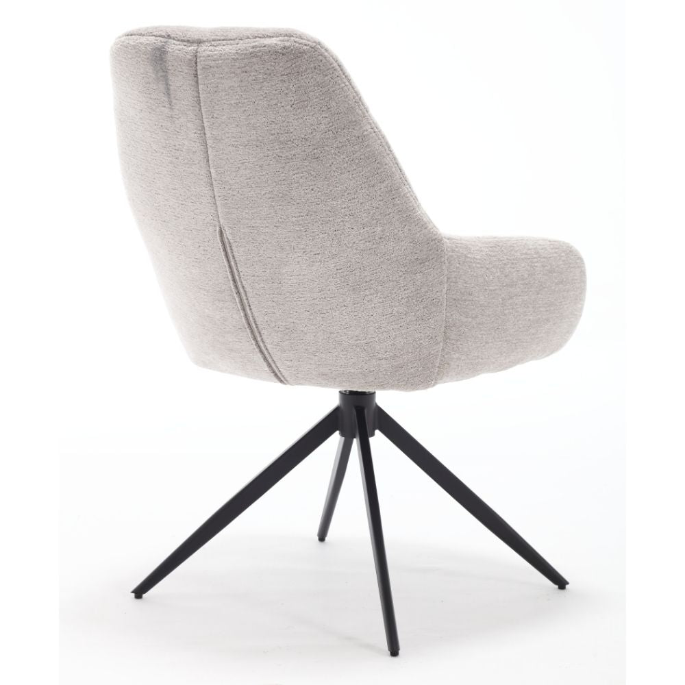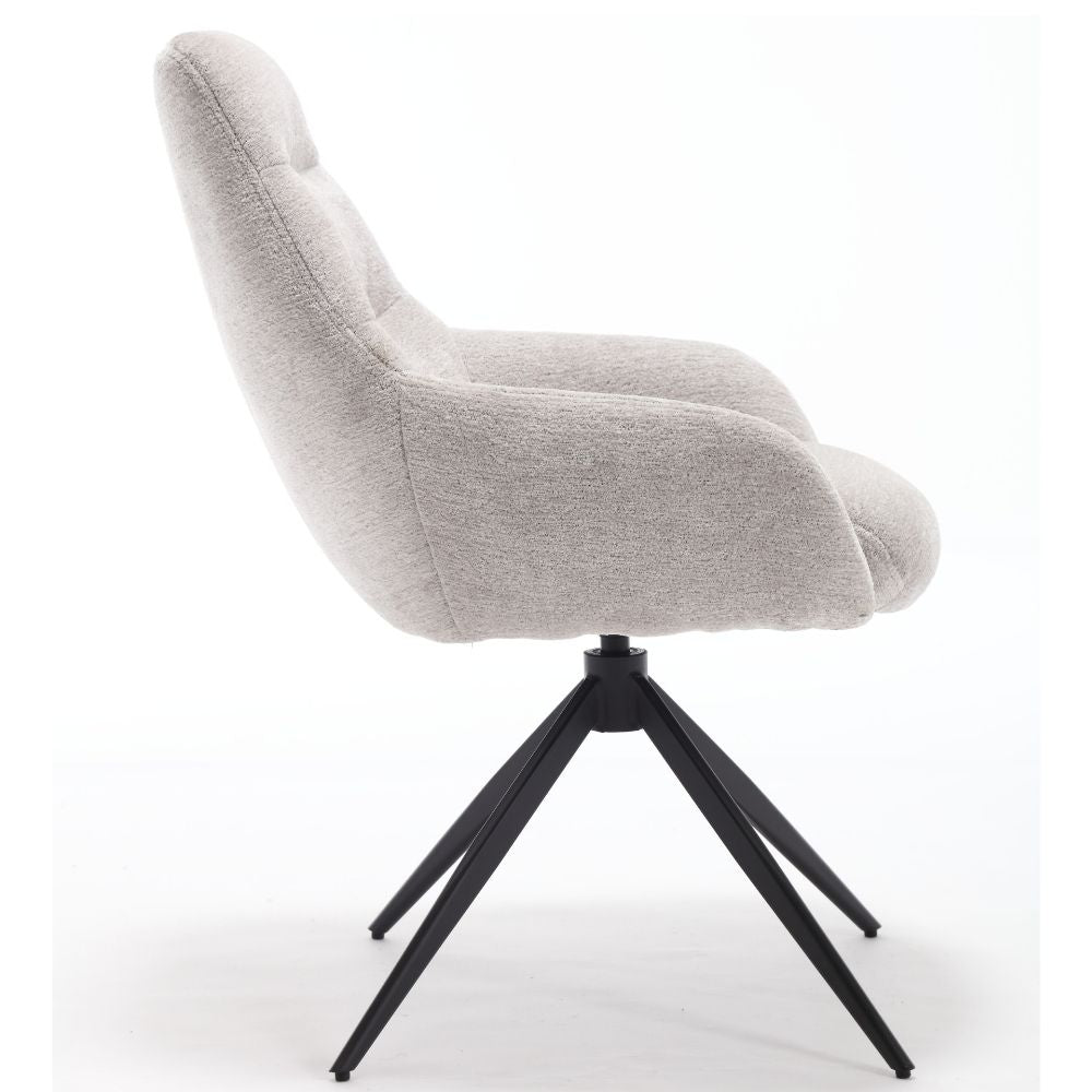 Der Drehstuhl AITANA besticht durch sein zeitloses Retro-Design, das sich harmonisch in verschiedene Einrichtungsstile einfügt. Der weiche Webstoff-Bezug verleiht dem Stuhl eine edle Note und ist besonders angenehm auf der Haut. Die schwarzen Metallbeine in Pyramidenform sorgen nicht nur für einen stabilen Stand, sondern setzen auch einen stilvollen Kontrast.