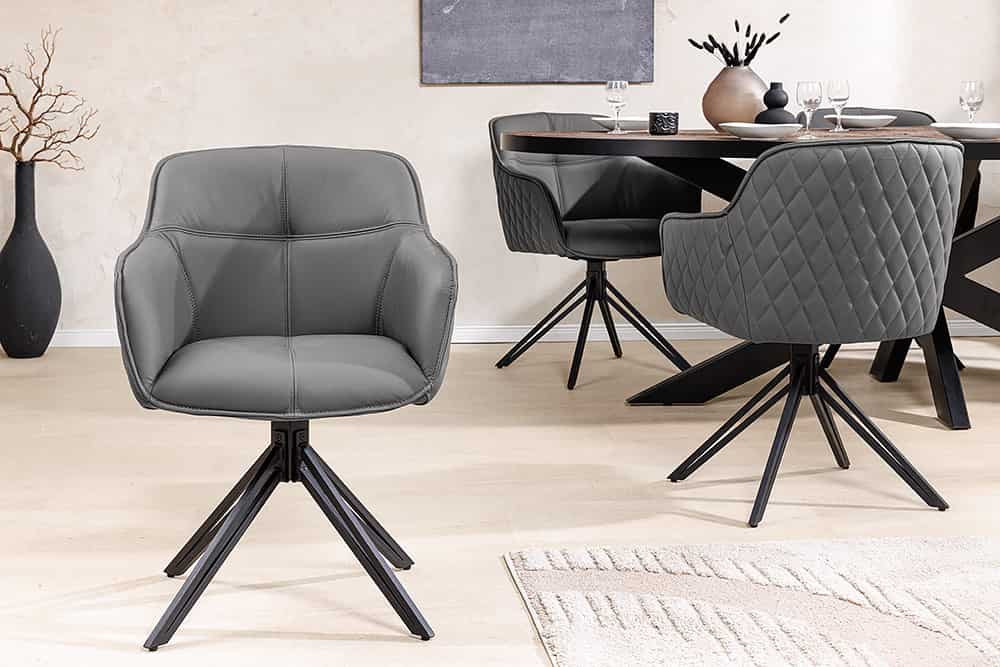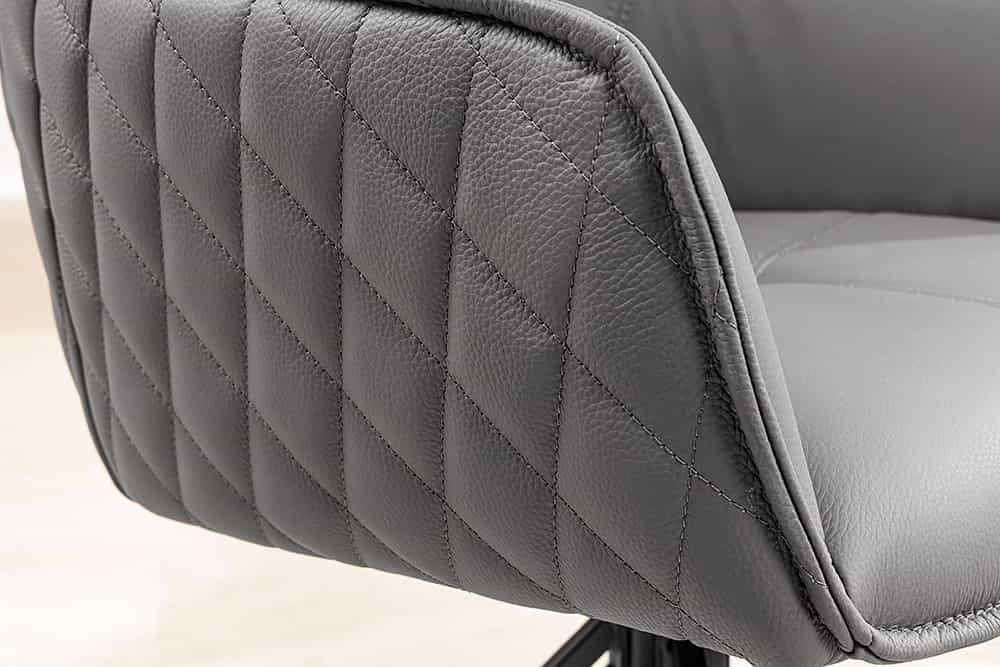 Dieser elegante Lederstuhl in einem klassischem Grau ist nicht nur ein Möbelstück, sondern ein Statement für Deinen ganz besonderen Geschmack. Lass Dich von der Kombination aus Echtleder in Grau und dem robustem schwarzen Metallgestell begeistern. Der HORA passt sich perfekt Deinem Lifestyle an - ob im Home Office, am Esstisch oder als Akzent im Wohnbereich. Genieße maximale Flexibilität dank der 180°-Drehfunktion. Die bequemen Armlehnen sorgen für optimalen Halt und Entspannung. Mit seiner ergonomischen Form unterstützt der HORA Deine natürliche Sitzhaltung und macht lange Sitzungen zum Vergnügen.