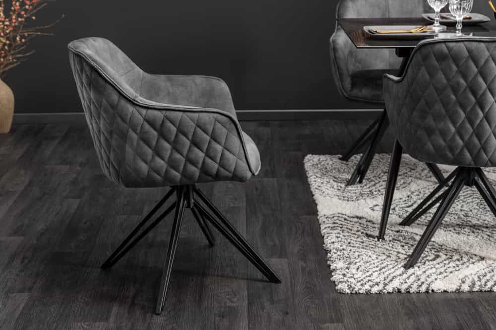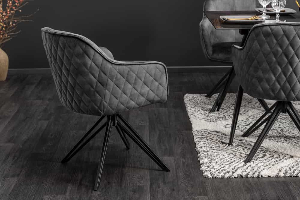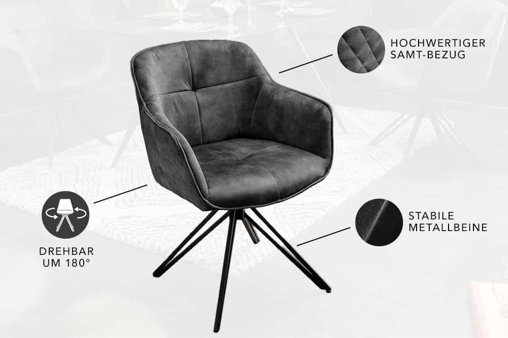 Eleganter Drehstuhl HORA Samt grau Retrostil Armlehnen