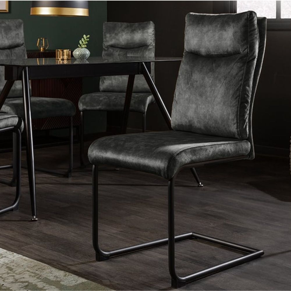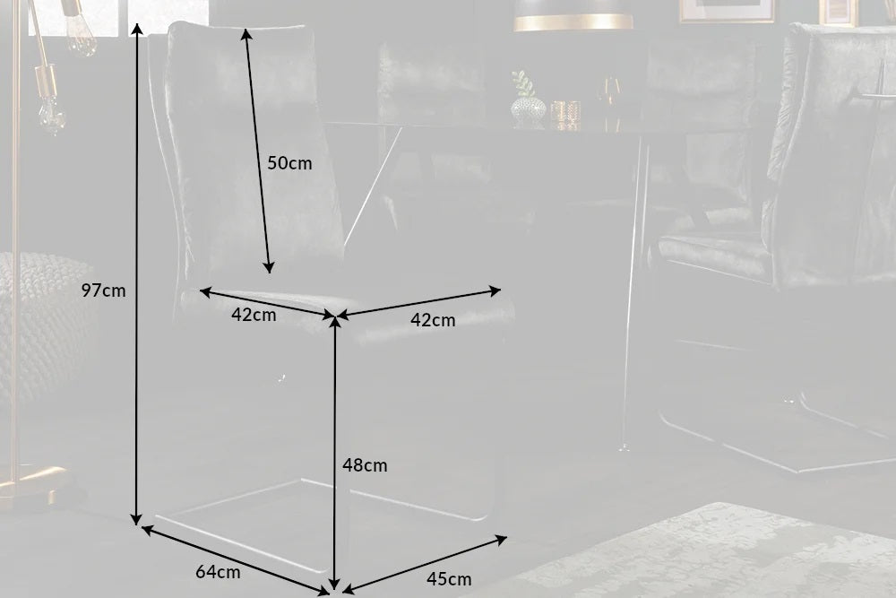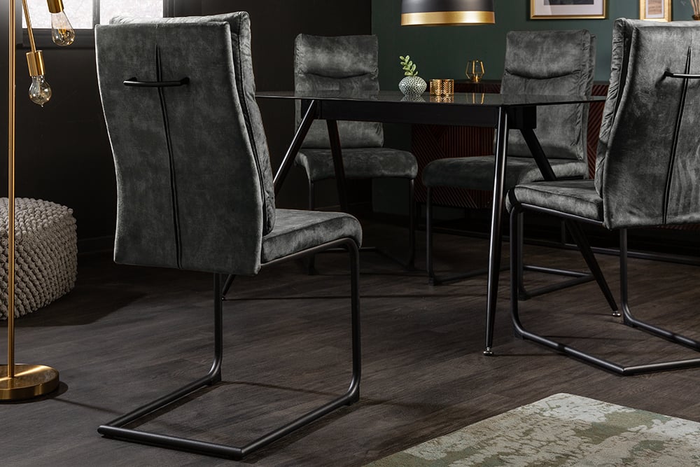 Eleganter Freischwinger Stuhl COMODO Samt grün mit Griff