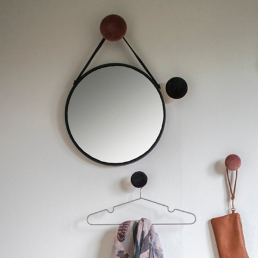 Eleganter Spiegel RAPANI mit Stahlrahmen und Gurt Ø 38cm