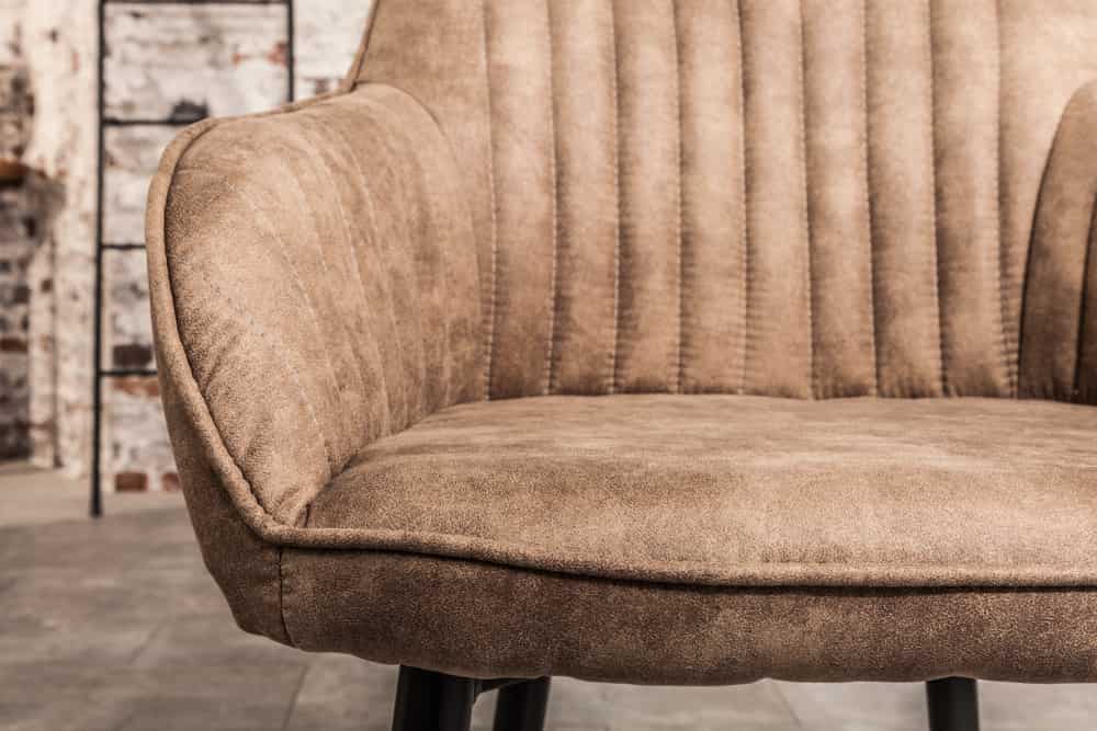 Eleganter Stuhl MILAN Mikrofaser Taupe Armlehnen Ziersteppung