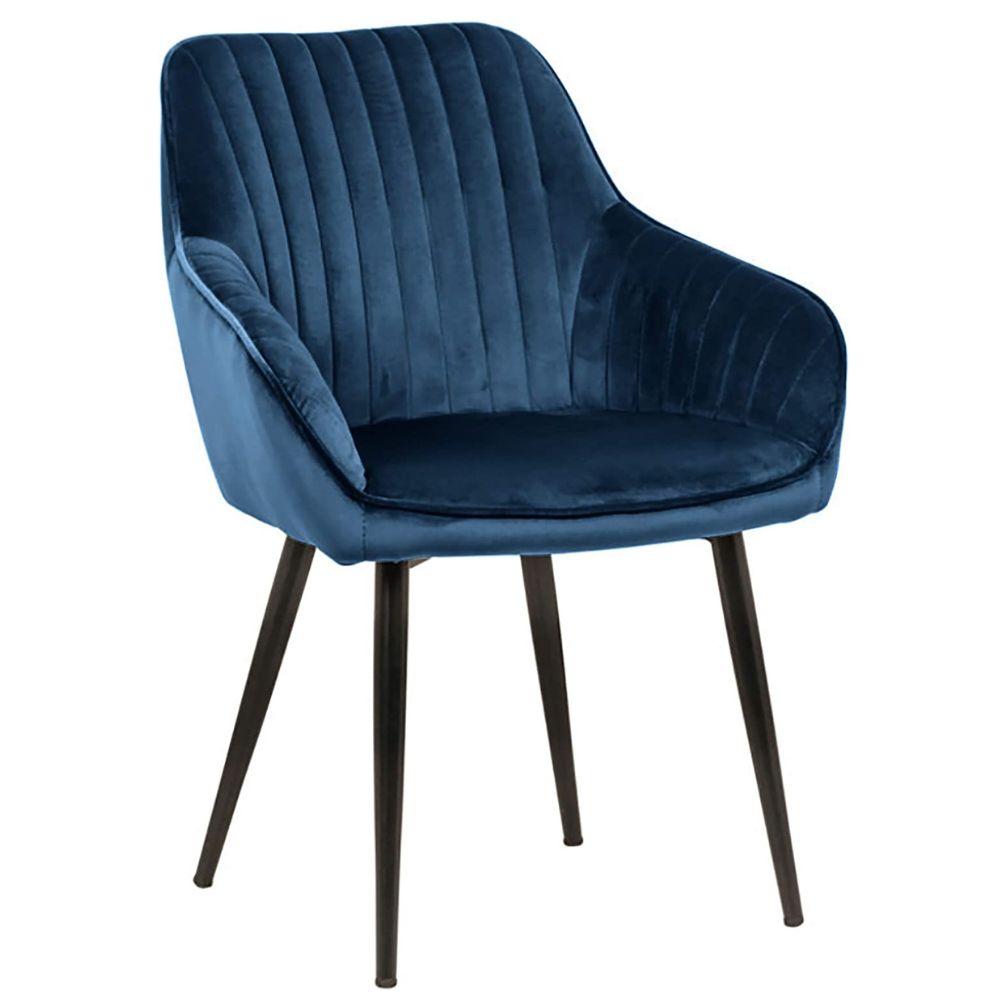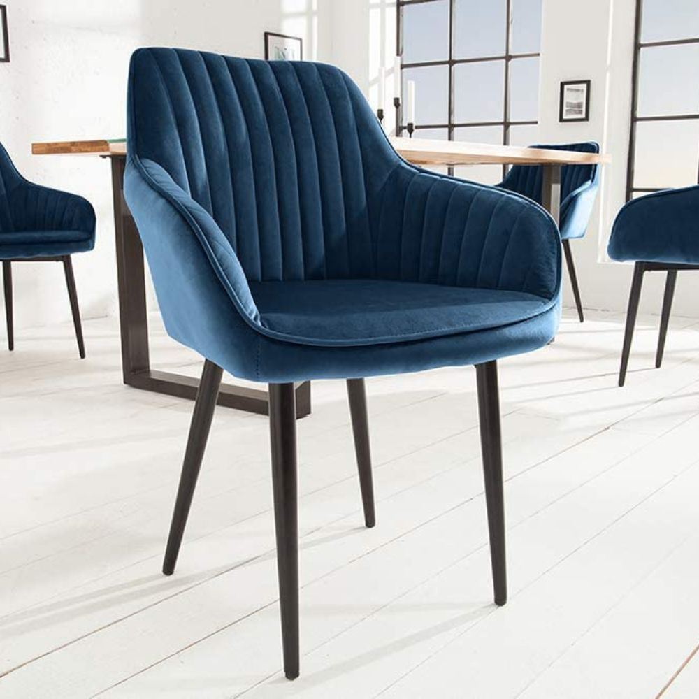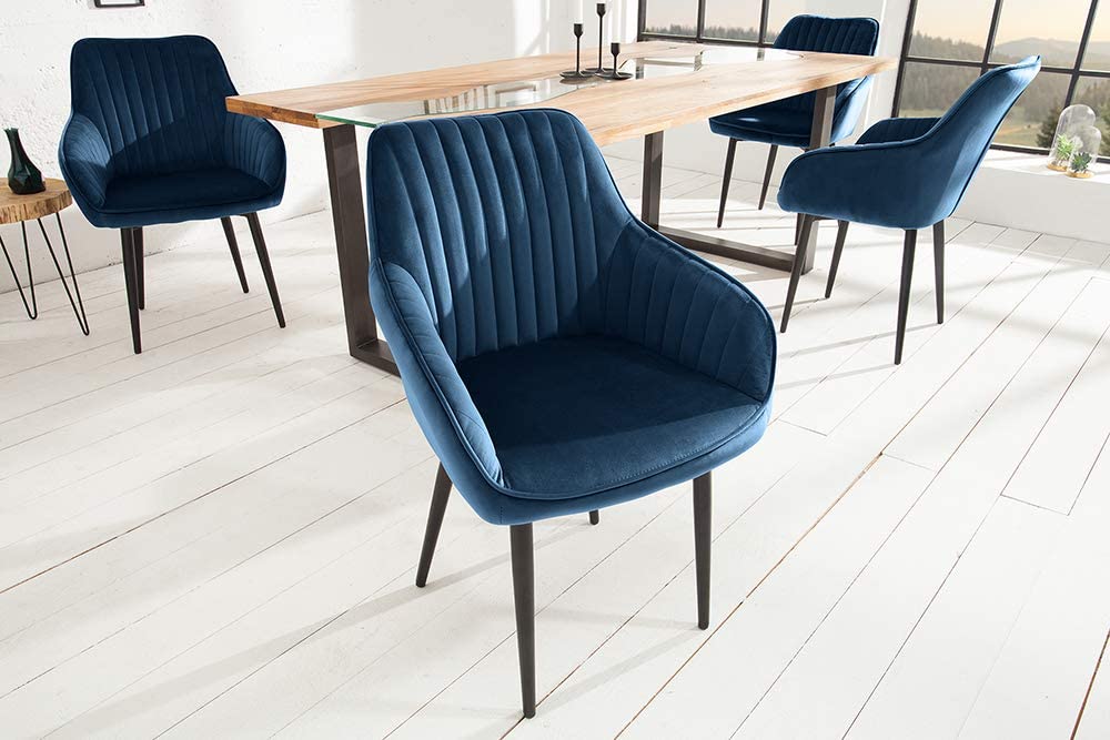 Eleganter Stuhl MILAN Samt blau Ziersteppung Armlehnen