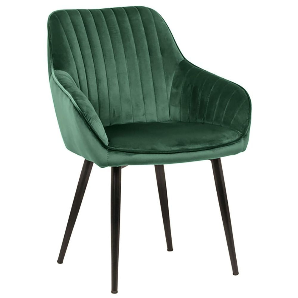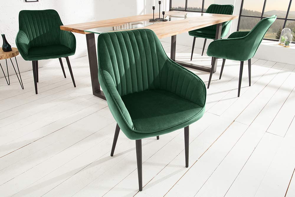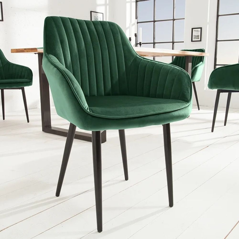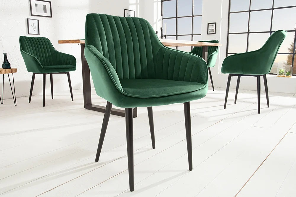 Eleganter Stuhl MILAN Samt grün Ziersteppung Armlehnen