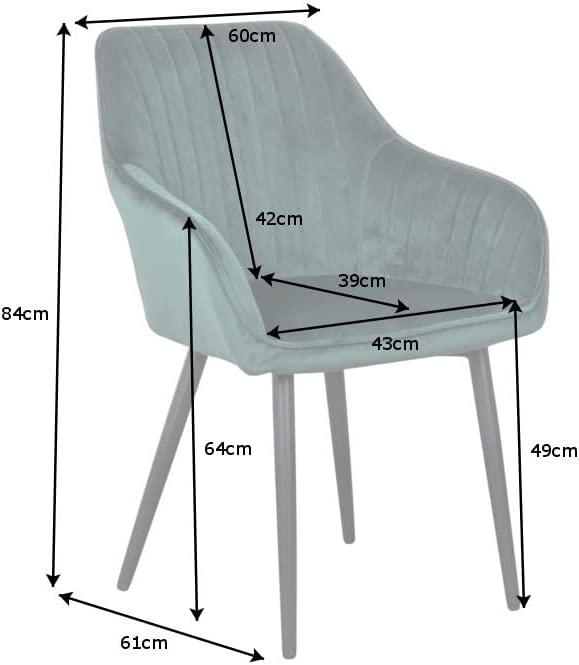 - Maße ca.: 60x84x61cm (BxHxT) - Sitzbreite 43cm - Sitzhöhe 49cm - Sitztiefe 39cm - Höhe Rückenlehne 42cm - Höhe Armlehne 19cm - Abstand Boden/Armlehne 64cm